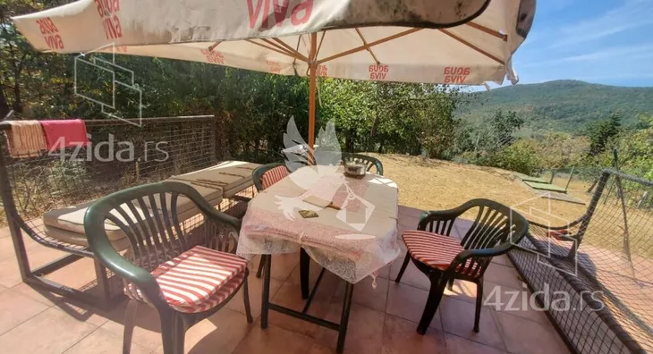Šifra: V119 Na prodaju je potpuno nameštena vikendica blizu centra Kosmaja, idealna za one koji traže mir u prirodi, a pritom žele brz pristup Beogradu, udaljenom samo sat vremena vožnje. Kuća, površine 99 m², smeštena je na ograđenom i održavanom placu od 7,9 ari. Sa velike terase pruža se prelep pogled na prirodu i planinske pejzaže. Vikendica je izuzetno praktična i poseduje sve što vam je potrebno za udoban boravak: dnevni boravak, kuhinju sa trpezarijom, tri spavaće sobe, ostavu, garažu, kupatilo, toalet i dve terase. Otpadne vode su regulisane septičkom jamom, a voda je tehnička. Nedaleko je autobusko stajalište sa linijom do centra Mladenovca, odakle često polaze autobusi ka Beogradu. Ovo je savršena oazu mira i mesto za uživanje u prirodi. Ukoliko želite više informacija, pozovite broj: +38... (prikaži broj telefona) - Nataša +38... (prikaži broj telefona) - Tanja Angecijska provizija 2%