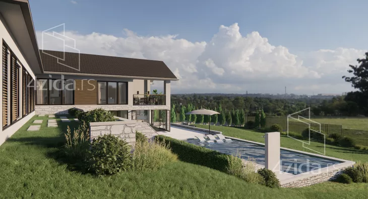 • 🌳 Privatnost obezbeđena zidom na koju se postavlja aluminijumska ograda , frontalno ka ulici, dok se na ostalim stranama postavlja panelna, transparentna ograda.