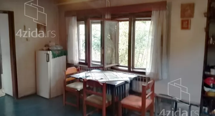 Kosmaj, vikendica na vrhu kod Hotela .. / vrh Kosmaja, nacionalni park, nedaleko od planinarskog doma i Hotela, vikend kuća sa ekstra pogledom, gradska voda, struja, u prirodi i zelenilu, vpr+ptk, 2 spavaće sobe, 2 kupatila, terasa (7,32m2) + veranda (15,19m2), EG, alu radijatori, kombinovan gorionik na čvrsto i tečno gorivo, kameni zidovi, kvalitetna gradnja, uknjiženo zauzeće placa od 46m2 pod zgradom ..