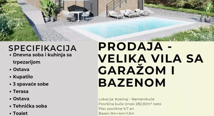 Na prodaju - moderna i prostrana porodična kuća površine 282,92 m², izgrađena na plac-u od 9,7 ari.