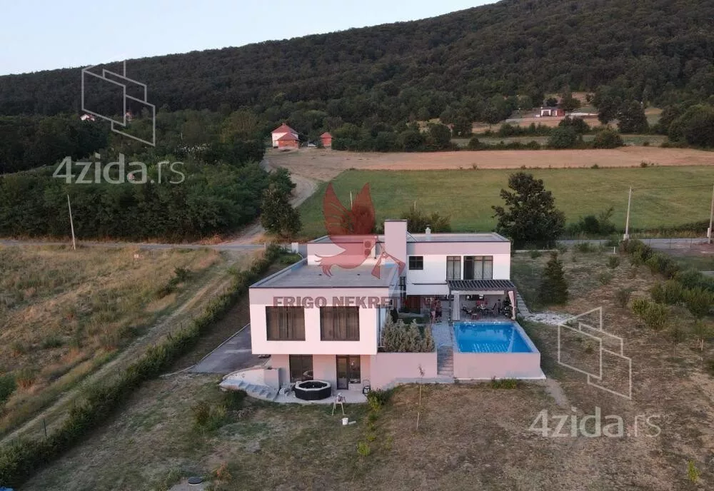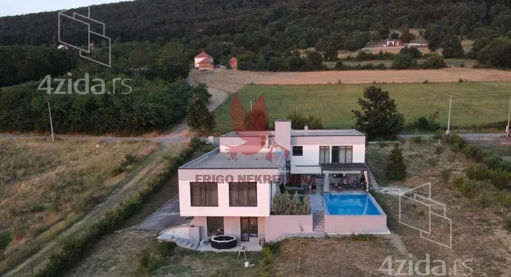 Šifra: K769 Ekskluzivna ponuda – Savremena vila na Kosmaju U netaknutoj prirodi Kosmaja, na mestu gde se mir i tišina spajaju sa modernim načinom života, nalazi se ova izuzetna arhitektonska vila površine 580 m² sa 40 ari placa – spoj minimalističkog dizajna, vrhunske tehnologije i luksuza. Nalazi se blizu poznatog sportiste i poznatog glumca, što dodatno naglašava ekskluzivnost lokacije Moderan dizajn koji ostavlja bez daha Elegantne linije, velike staklene površine i pažljivo birani materijali čine ovu vilu prvoklasnim primerom savremene arhitekture. Uređeno dvorište krasi mladi voćnjak i vinograd, dok bašta prepuna ruža i irisa pruža prelep vizuelni doživljaj i osećaj mira. Enterijer za savršenu udobnost Prostran i svetao dnevni boravak sa panoramskim pogledom na kosmajska brda, velika kuhinja sa trpezarijom i dnevnim boravkom, sve osmišljeno za uživanje i druženje. U vili se nalazi: – šest spavaćih soba, svaka sa sopstvenim kupatilom i garderoberom – dve dodatne sobe, koje mogu služiti kao radna soba, gostinska soba ili studio – predviđena sauna za potpuni wellness doživljaj – sportski teren za rekreaciju i fizičku aktivnost – svečana hala ili letnja kuhinja, idealna za prijeme i okupljanja Kupatila su urađena sa umetničkim keramičkim pločicama i vrhunskom sanitarnom opremom, dok je enterijer pažljivo osmišljen tako da pruža efikasnost i komfor kao u stanu. Pametna tehnologija i energetska efikasnost: – podno grejanje i hlađenje; – šest inverter klima-uređaja za optimalnu temperaturu tokom cele godine; – toplotna pumpa i solarni paneli za ekonomično funkcionisanje; – ventilacioni sistem sa rekuperacijom toplote; – sistem za prečišćavanje otpadnih voda; – pametno upravljanje svim sistemima putem mobilne aplikacije; – puna tehnička oprema i kvalitetna gradnja sa kompletnom dokumentacijom. Luksuzni eksterijer i prostor za uživanje: – bazen dimenzija 10 x 5 metara, sa tirkiznom vodom koja sija pod suncem; – moderna pergola i prostrane terase sa panoramskim pogledom; – uređeni delovi za rekreaciju, druženje i opuštanje na otvorenom. Dodatne prednosti: – garaža površine 40 m², – velika parcela sa uređenim prilazom, – prostor za rekreaciju, hobi aktivnosti i sadnju. Kuća je građena između 2018. i 2020. godine, sa donjim nivoom koji je u završnoj fazi enterijerskih radova. Ova vila nije samo dom — ona je način života. Mesto gde se luksuz i priroda dopunjuju, gde svaki pogled kroz prozor pruža mir, a svaki dan počinje osećajem slobode i zahvalnosti. Ako želite više informacija, pozovite broj: +38... (prikaži broj telefona) - Nataša +38... (prikaži broj telefona) - Tanja Angecijska provizija 3%