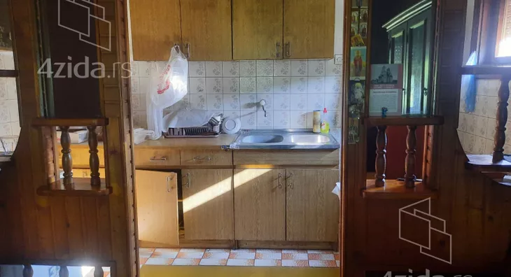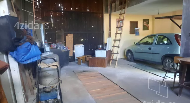 Kuća u Kovanluku sa kamionskom i kolskom garažom,udaljena oko 3km od grada.Pored velike i male garaže ima i letnju kujnu,drvljenik i ostavu.Ima i bunarsku vodu.Na placu od 13 ari posadjeno je voće,a sam plac je negovan i uredjen.Kuća u osnovi ima 81 kvadrat.U prizemlju je prostran dnevni boravak sa kuhinjom i ostavom,kotlarnica(razvedeno je grejanje kroz prizemlje ,kotao na drva)spavaća soba,kupatilo i ostava.Sprat je omalterisan,i na njemu su tri sobe i prostor za kupatilo,takodje velika terasa.Potkrovlje je klasično potkrovlje bez pregradnih zidova,u sivoj fazi.Cena:67000€