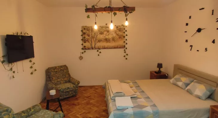 - Opremljenost: Namešteno - internet, TV, klima, frižider, šporet, ležaj