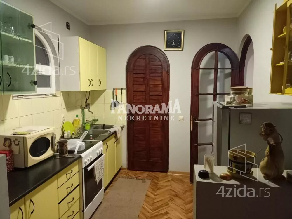 U prilici smo da Vam ponudimo odličnu porodičnu kuću na prelepoj lokaciji. Kužća je sagrađena u dva nivoa i nalazi se na uglu dve ulice . Obe ulice široke su 6 m. Osnova prizemlja je 120 m2 ,gde je smešten trosoban stan orijentisan prema dvorištu. Od prostorija stan ima ulazni hodnik,dnevni boravak, kuhinju ,trpezariju i ostavu. U dnevnoj sobi ima i zidani kamin.Spavaći deo odvojen je od dnevnog.Tu se nalaze dve spavaće sobe i kupatilo. Na spratu su dva odvojena dvosobna stana do kojih se dolazi spoljnim stepeništem. U dvorištu je garaža u kojoj se nalazi i kotlarnica. Kuća je u procesu legalizacije. Parcela od 9 ari ,uknjižena 1/1. Odlična lokacija za investiciju Agencijska provizija 2% Za više informacija kontakt telefon 060... (prikaži broj telefona) Gordana