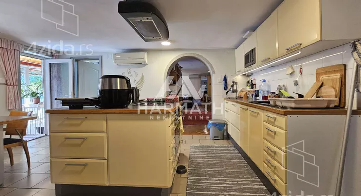 Prodaje se prizemna kuća 206m², na placu od 1367m², sa dodatnim objektom od 330m², koji se koristi kao magacin i radionica. Nalazi se na Makovoj sedmici, uvučena 70m od glavnog puta u mirnom delu ulice Majšanski put. Opis nekretnine: Sastoji se od: -Stambeni prostor: 206 m² -Ulazni prostor -Kancelarija -Spavaće sobe: 3 -Dnevna soba: Velika i svetla sa izlazom na zatvorenu terasu na kojoj se nalazi i radna soba -Kuhinja sa trpezarijom koja ima izlaz na zatvorenu terasu -Ostava -2 kupatila Tehničke karakteristike: -PVC prozori sa komarnicima -PVC vrata -Garaža i magacinski prostor površine 330m² -Grejanje: -Centralno, toplotne pumpe voda-vazduh (može na struju i na drva), energetski efikasne i ekološke. -Inverter klime -Podovi: Parket i pločice Dvorište: -Prostrano, savršeno za odmor i aktivnosti na otvorenom. -Parking: Osiguran u drugom dvorištu. Dodatni sadržaji: -Bazen 39m², -2 bušena bunara na 46m i 130m -Alarm i video nadzor -Inverter klime: 5 Kuća je građena od čvrstog materijala- cigle. Obložena je stiropor izolacijom 15cm, a tavanski prostor je betonski i obložen stiropor cementom 50cm. Radionica i magacin : -Površine 330m², sa podnim grejanjem, pločicama, PVC stolarijom, dodatnim toaletom, pristup iz kuće i iz dvorišta na dvoje rolo vrata (od kojih su jedna automatizovana), odlični za sve vaše projekte i skladištenje. Ova nekretnina nudi sve što vam je potrebno za savršen porodični život i idealna je za one koji žele udobnost, privatnost i stil, kao i za različite poslovne delatnosti. Papiri uredni. Video: https://youtu.be/36psoiuyZlM Za više informacija posetite naš sajt preko sledećeg linka: https://harmathnekretnine.rs/detalji-nekretnine/282 ili pozovite na označeni kontakt telefon.