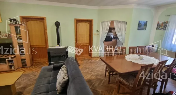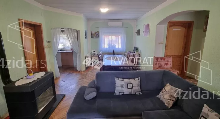 Subotica - Makova sedmica, prodaje se prizemna samostalna kuća površine 94kvm koja se nalazi na placu površine 4641kvm. Kuća u svom sastavu poseduje: veliki dnevni boravak sa trpezarijom, kuhinju, tri spavaće sobe, ostavu, hodnik, kupatilo i prostranu terasu. Na podovima u sobama je parket dok je u kuhinji keramika, vrata i prozori su pvc, grejanje je na gas i etažno na čvrsto gorivo, inverter klima, tfs, gradska voda, dva bušena bunara i septička jama, demit fasada, garaža u sklopu kuće. Na placu su posađeni zasadi: šljive, kajsije i trešnje. Red. br. 24-56