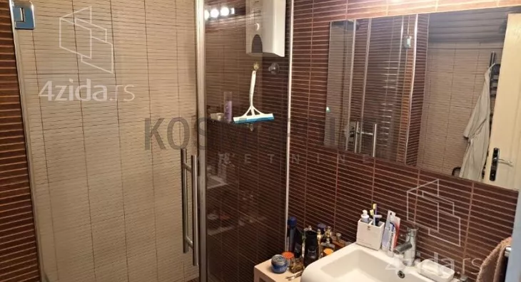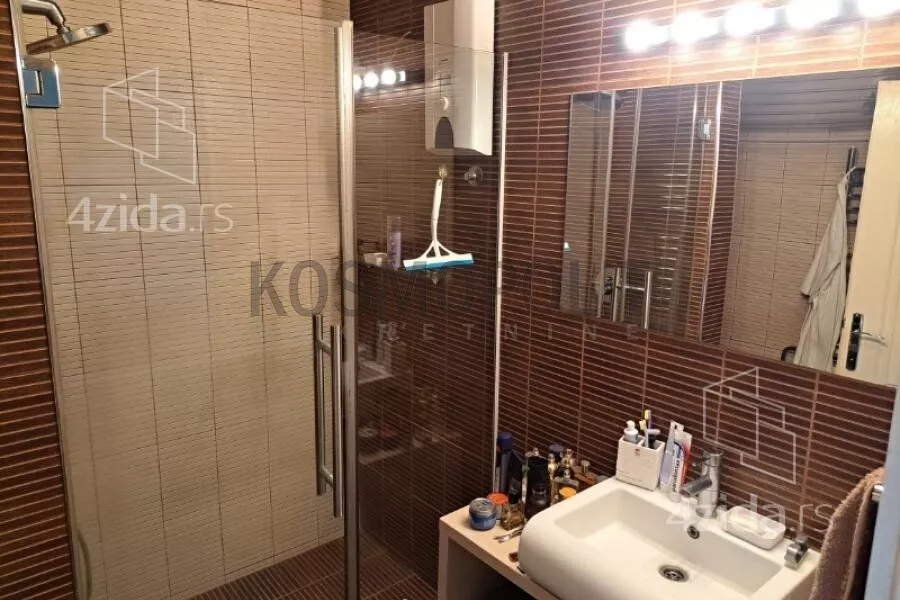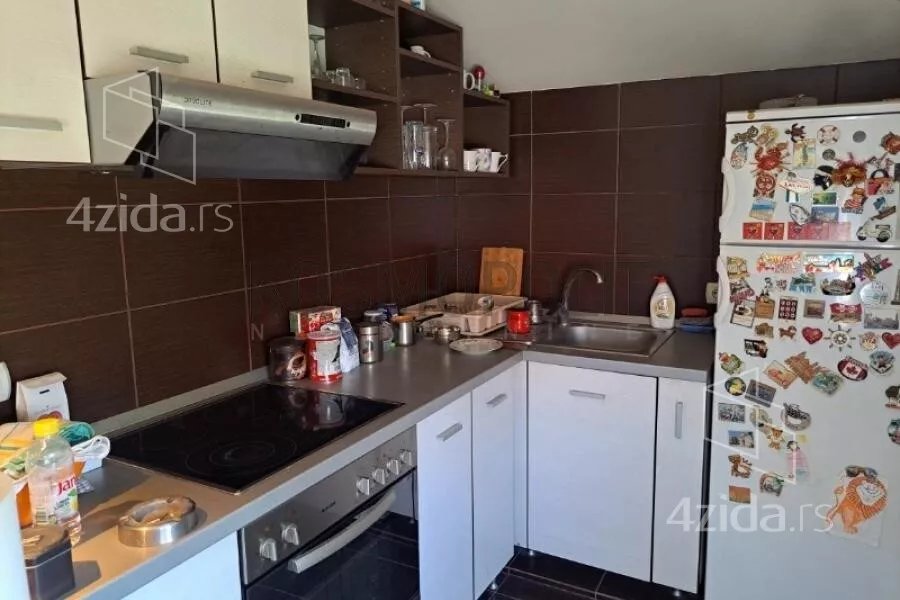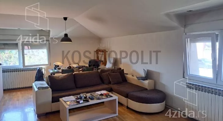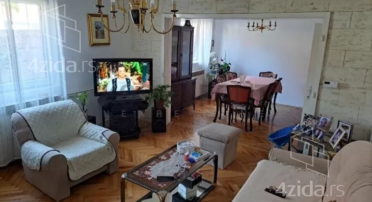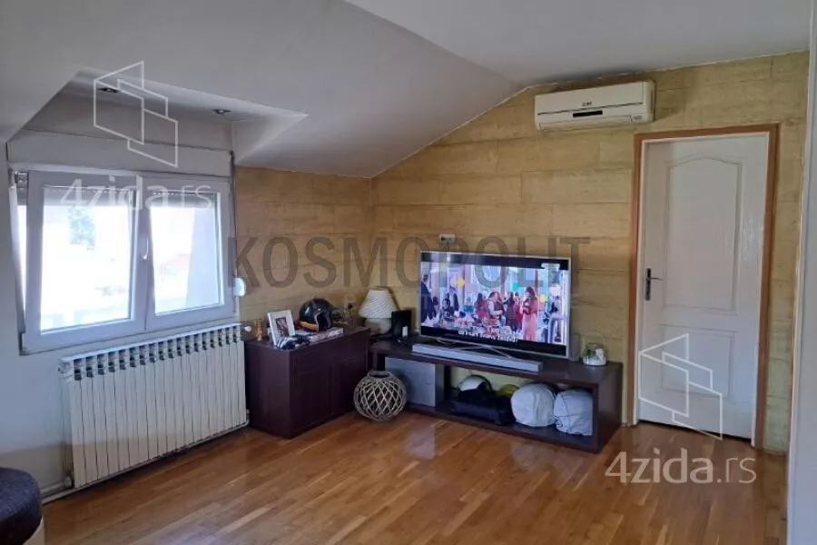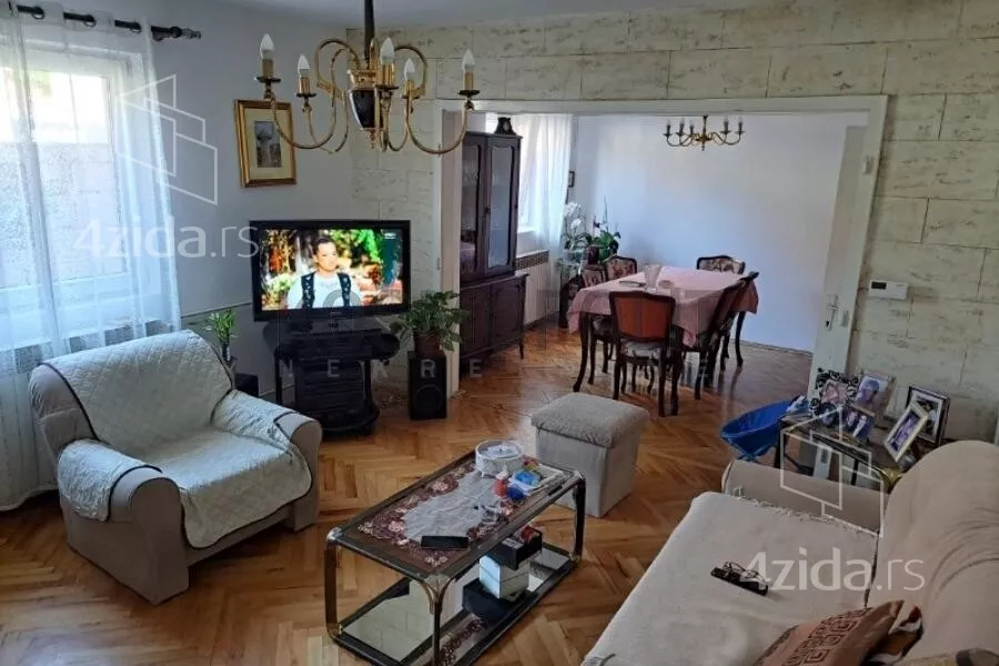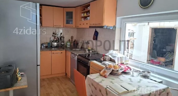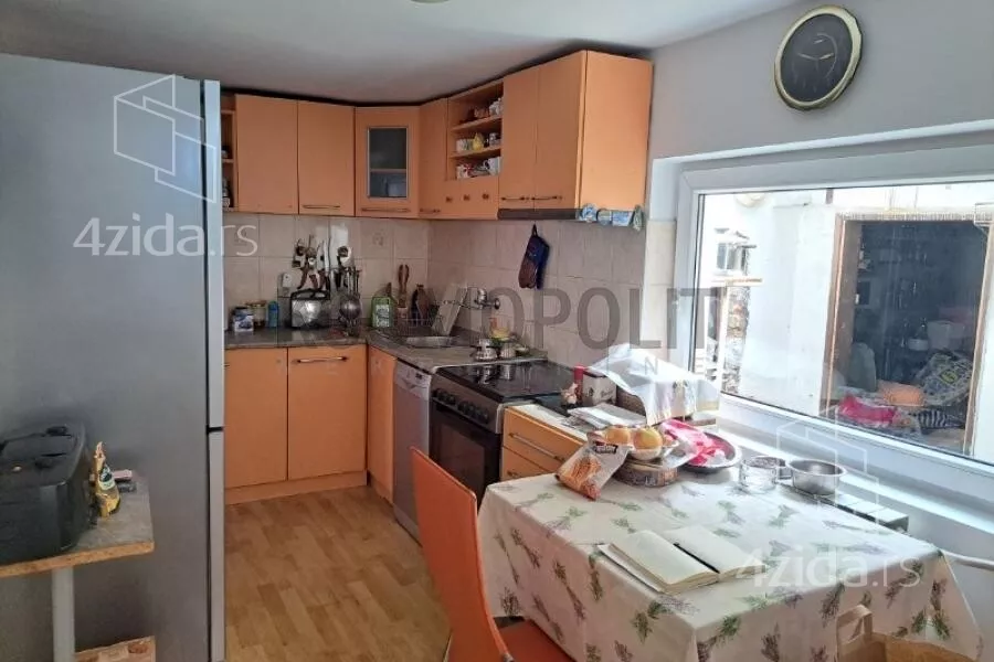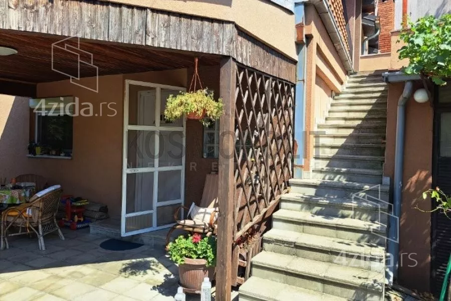Na odličnoj lokaciji, prodaje se kuća 130 m2 (4 ara), podeljena u dve stambene jedinice. U prizemlju kuće nalazi se jednoiposoban stan veličine 65m2 koji se sastoji od predsoblja, hodnika, velike dnevne sobe sa trpezarijom, kuhinje, špajza, kupatila i velike terase. Na prvom spratu kuće (potkrovlje) nalazi se dvoiopisoban stan veličine 65m2, koji se sastoji od hodnika, prostrane dnevne sobe sa trpezarijom, dve spavaće sobe, kuhinje, kupatila i terase (40 m2). Kuća poseduje garažu (40 m2), pomoćni objekat, dvorište i ograđena je. Grejanje etažno. Prodaje se sa ugradnim nameštajem. U blizini su osnovne škole, vrtići, marketi, gradski prevoz. Kuća je u jako dobrom stanju, bez dodatnih ulaganja, za svaku preporuku. Samo za KEŠ KUPCE! ID oglasa: 73975. Agencijska provizija 2% od kupoprodajne cene.