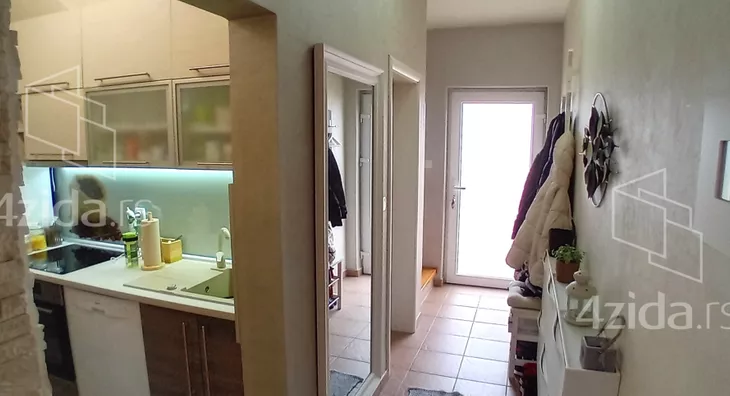 Na Bele Bartoka 60a u Malom Radanovcu prodaje se kuća u nizu od 91m² na dva sprata. Kuća iz 2016. godine je potpuno nameštena i opremljena modernim sistemom podnog grejanja sa toplotnom pumpom.
