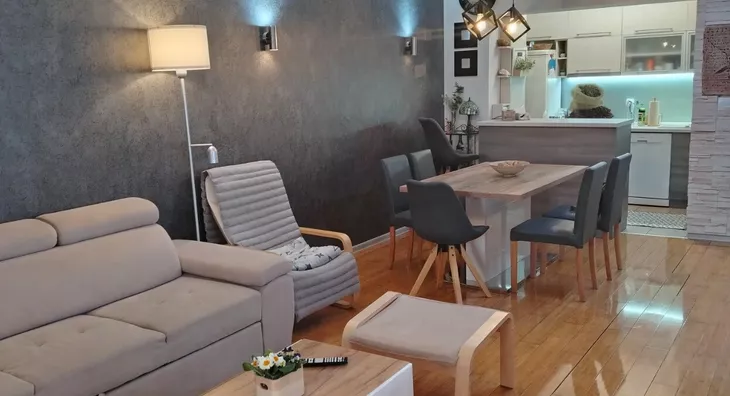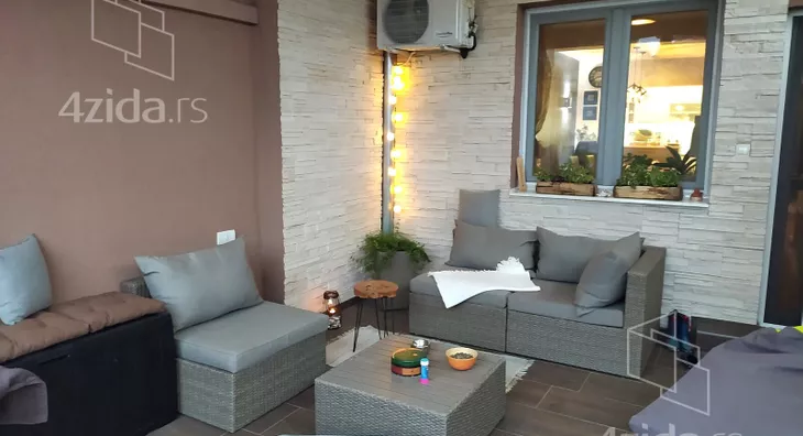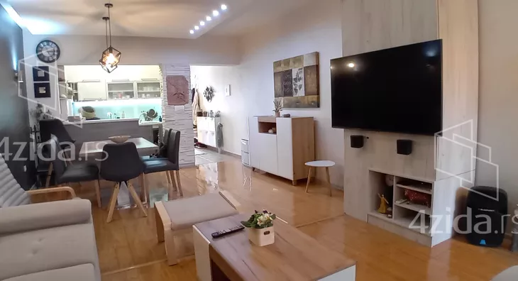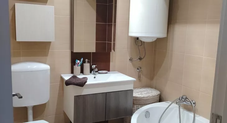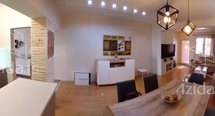- Opremljenost: Namešteno - internet, klima, veš mašina, kuhinjski elementi, sudo mašina, frižider, zamrzivač, mikrotalasna rerna, šporet, rerna, ležaj, plakar, ugradni plakar, kanalizacija