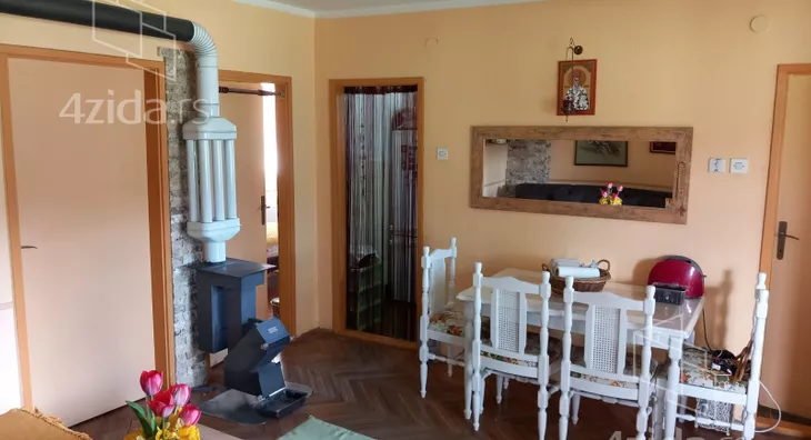 Prizemna vikendica površine 70,39 m² + 12,5 m² zastakljenog trema, na prelepom placu od 60 ari. Sastoji se od dve spavaće sobe, dnevne sobe, kuhinje, kupatila i radionice. Poseban ambijent pruža hodnik sa velikim prozorima duž cele dužine, koji otvara pogled na zelenilo i pruža miran, prirodan ugođaj.