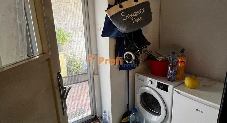 Sastoji se od ulaznog predsoblja, velikog dnevnog boravka sa trpezarijom i kuhinjom, dve spavaće sobe, kupatila, dela koji se koristi kao vešernica i izlazi na zajedničko dvorište. Sve prostorije imaju prirodnu ventilaciju. U dvorištu je i ostava/šupa. Gradska voda i kanalizacija i postoji mogućnost priključka na GAS. Trenutno je TA grejanje. Retko na tržištu.