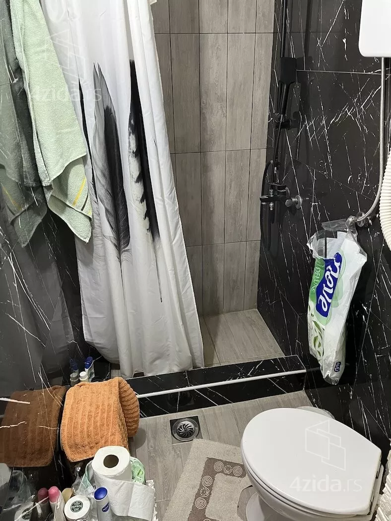 Sastoji se od prizemnog dela u kom se nalaze dnevna soba sa kuhinjom i kupatilom. Kupatilo je potpuno renovirano zajedno sa svim instalacijama. Prvi sprat se sastoji od dve spavaće sobe sa renoviranim toaletom. Prvi sprat je okružen terasama, to jest svaka soba ima svoju terasu. Na drugom spratu tj. potkrovlju je tavan (nije uknjižen), koji takođe ima osnovu od 31m2 i može se renovirati u funkcionalnu sobu.