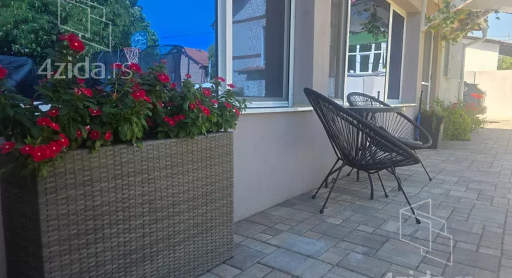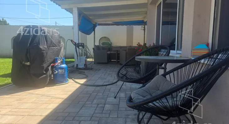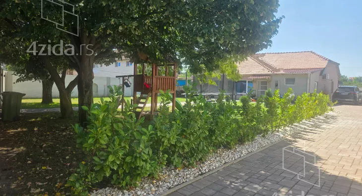 Kuća se prodaje sa ugradnim kuhinjskim elementima sa ugradnom belom tehnikom (bez frižidera), ugradnim plakarima i kompletnom vešernicom (police , mašina za pranje i mašina za sušenje veša)