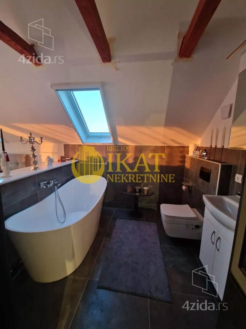 - U potkrovlju se nalazi spavaća soba, garderober, kupatilo i francuski balkon