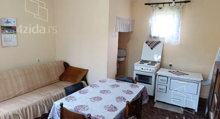 Kuća površine 70m2 sastoji se od hodnika, kupatila dnevne sobe sa kuhinjom i trpezarijom, špajz, dve spavaće sobe.