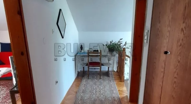 Na prodaju lepa, kvalitena kuća novije gradnje na ravnom delu (bez klizanja) Mramorskog brda. Ukupna površina kuće je 130 m2, prizemlje i potkrovlje, na ravnom pravougaonom placu od 698 m2. Prizemlje se sastoji od ulaznog hodnika, dnevne sobe sa trpezarijom oko 40 m2, izdvojene kuhinje, kupatila i terase. Unutrašnjim stepenicama se dolazi do potkrovlja, gde se korisnim hodnikom stiže do tri spavaće sobe i kupatila. Iz dve sobe se izlazi na prostranu terasu sa lepim pogledom. Grejanje, na čvrsto gorivo i TA, na podu je parket, stolarija od kvalitetnog drveta. Objekat je novijeg datuma, sa izolacionom fasadom, novim krovom i olucima. Ima upotrebljiv podrum i izdvojenu garažu.. Plac je lep, se dobrim pristupom glavnoj saobraćajnici, ali u mirnom delu naselja. Kuća je uknjižena, privatna svojina. Za više informacija pozovite Agenciju.