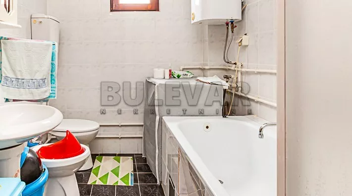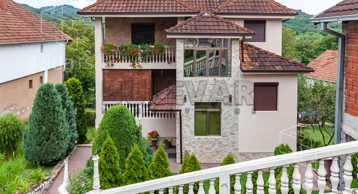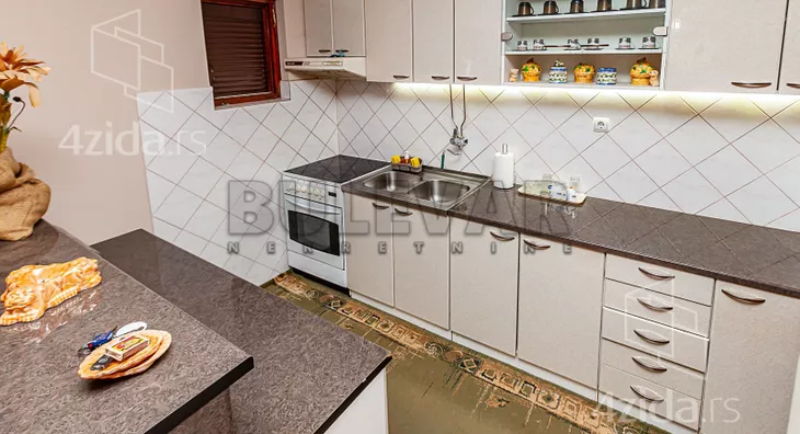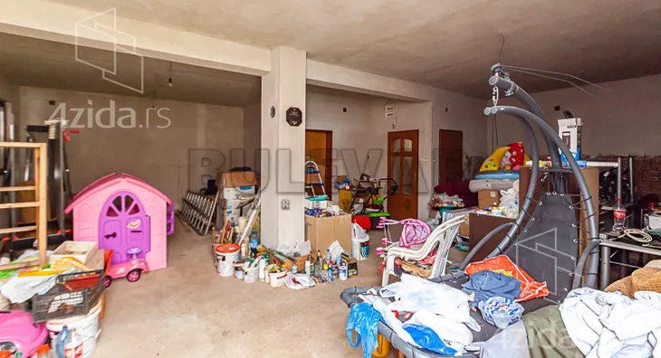 Na prodaju lepa, prostrana kuća u naselju Nikola Tesla. Nalazi se u mirnom i lepom okruženju za porodično stanovanje. Kuća se nalazi na velikom i izuzetno lepo uređenom placu od 14 ari. Kuća je uknjižene površine 300m2 i sastoji se od prizemlja, sprata i potkrovlja. Prizemlje i potkrovlje su u sivoj fazi gradnje, sa razvedenim elektro i vodovodnim instalacijama. Prizemlje je moguće koristiti kao poslovni ili magacinski prostor. Sprat je u funkciji trosobnog stana i sastoji se od ulaznog hodnika, velike dnevne sobe sa trpezarijom i kuhinjom i izlazom na terasu, dve spavaće sobe i kupatila. U dvorištu ispred kuće nalazi se i garaža sa kaminom i roštiljem na nivou ispod nje. Kuća je kvalitetne gradnje, ozakonjena, čisto vlasništvo. Za više informacija stojimo Vam na raspolaganju.