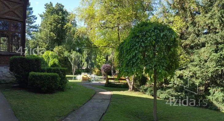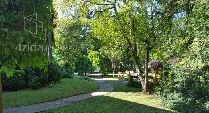 Pravougaona osnova ovog lepog prizemnog petosobnog zdanja prepoznatljiva je po isturenom i bogato izrezbarenom drvenom tremu (verandi) sa elementima rustike, te sa zastakljenom terasom do koje vodi kameno stepenište. Zidana od mešanog materijala, osnove 296m2, kuća nema posebno arhitektonsko stilsko obeležje što je čini jedinstvenom. Oba krila, sa dva donekle isturena dela, su obložena drvetom, a fasada ima četiri pravougaona prozora. Iznad središnjeg drvenog trema i iznad oba kućna krila, nalaze se omanji izrezbareni drveni zabati sa istaknutim vrhom. Kućni plac, sa vrtom prostire se na 4356m2, u parku ima pedesetak vrsta, sorti i klonova raznog drveća i žbunja. Najlepša je Tisa stara preko 100 godina. Gotovo trećina zelenila su četinari kao što su Beli bor, Kedar, Pančićeva omorika, Tisa, Smreka, Tuja itd. Od lišćara su zastupljeni Bođoši, Lipe, Crveni kesten, Javor kao i Rute, Hibiskusi, Jasmin...