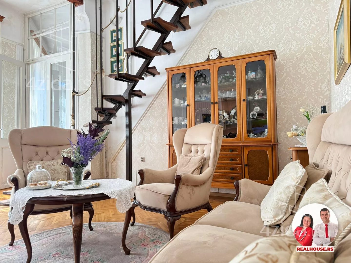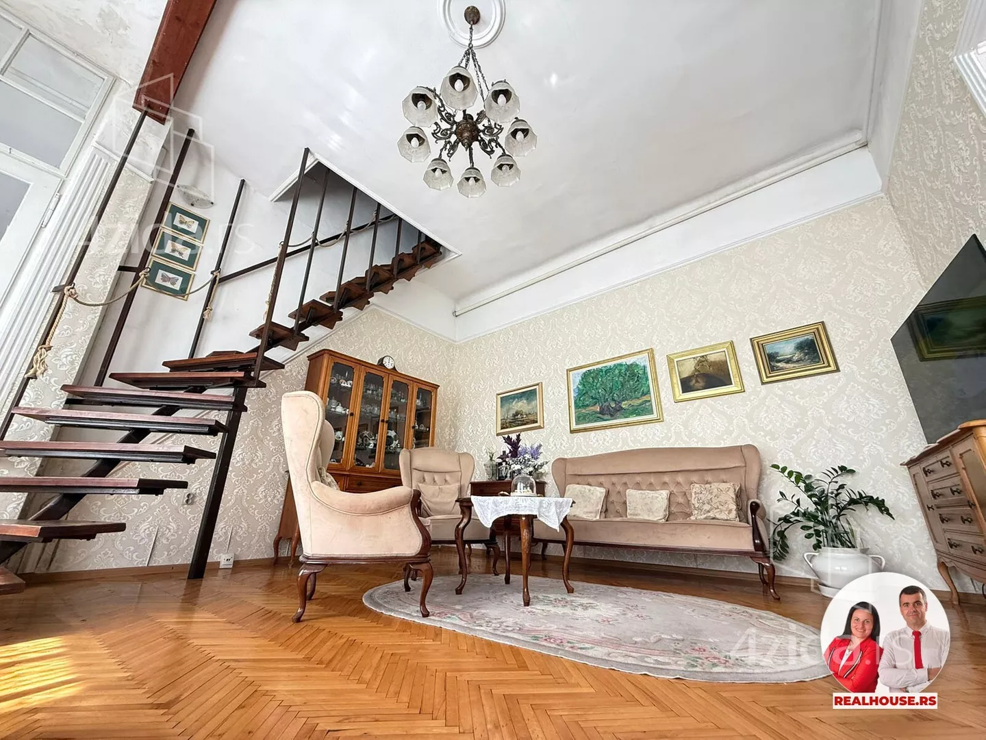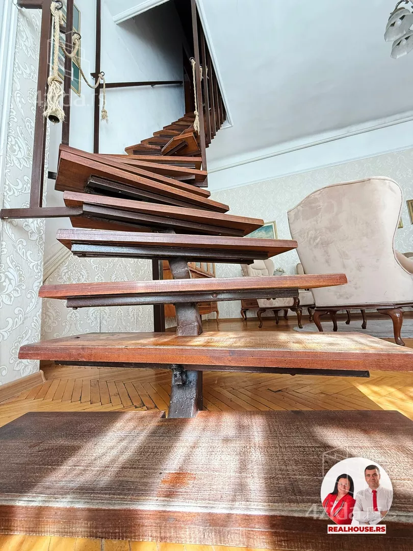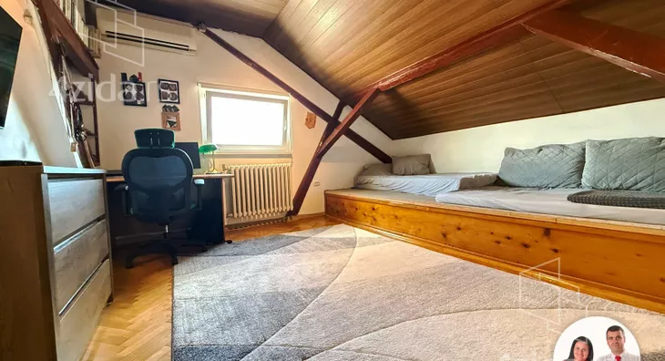 Poseban dragulj ovog dela kuće su ručno radjene drvene stepenice koje vode u tavanski deo – majstorski izradjene sa detaljima kakvi se danas gotovo i ne vidjaju. Ovde su dve sobe koje su potpuno uredjene u jednom delu dok je u drugom autentičan tavanski prostor sa originalnim gredama starim više od jednog veka. Ta konstrukcija sačuvana u svom izvornom stanju daje prostoru posebnu čar i pruža neograničene mogućnosti – bilo da ga preuredite u dodatne sobe, radni prostor, atelje ili neku drugu kreativnu ideju.