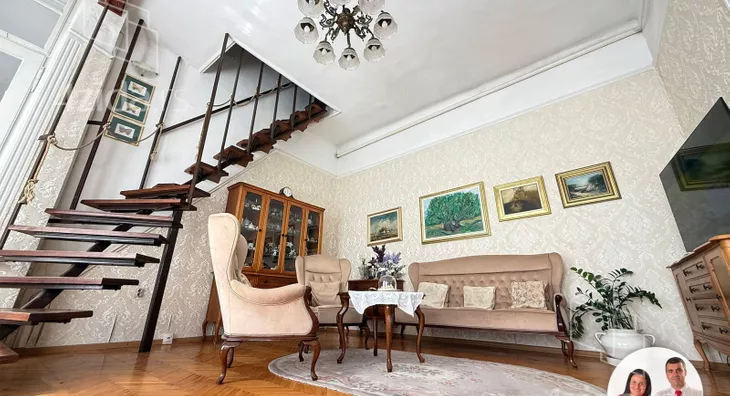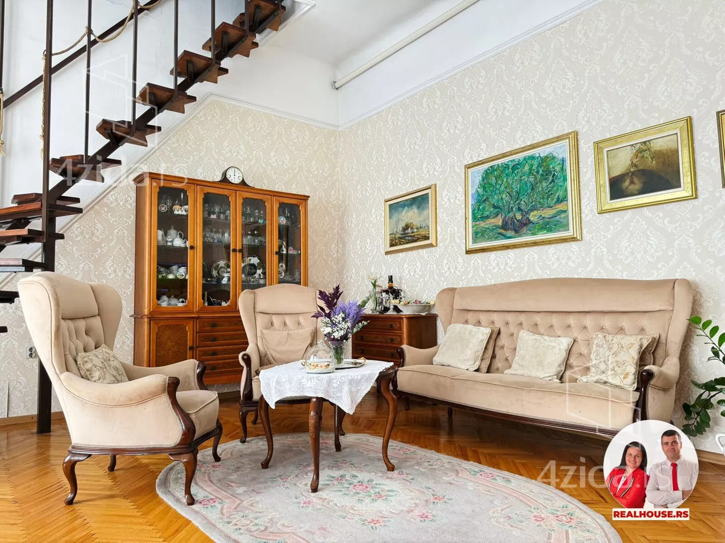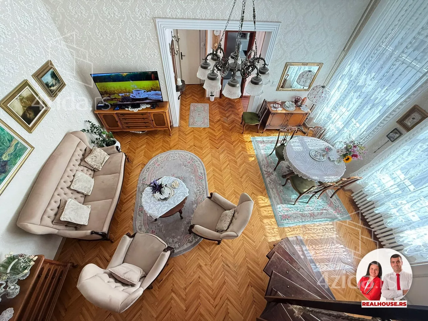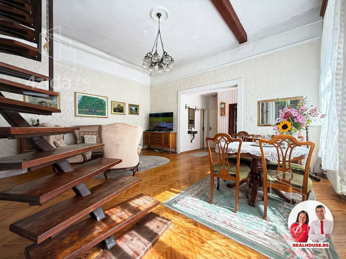 Poseban dragulj ovog dela kuće su ručno radjene drvene stepenice koje vode u tavanski deo – majstorski izradjene sa detaljima kakvi se danas gotovo i ne vidjaju. Ovde su dve sobe koje su potpuno uredjene u jednom delu dok je u drugom autentičan tavanski prostor sa originalnim gredama starim više od jednog veka. Ta konstrukcija sačuvana u svom izvornom stanju daje prostoru posebnu čar i pruža neograničene mogućnosti – bilo da ga preuredite u dodatne sobe, radni prostor, atelje ili neku drugu kreativnu ideju.