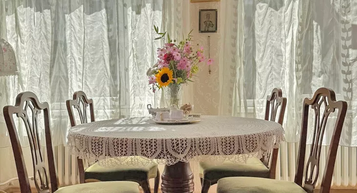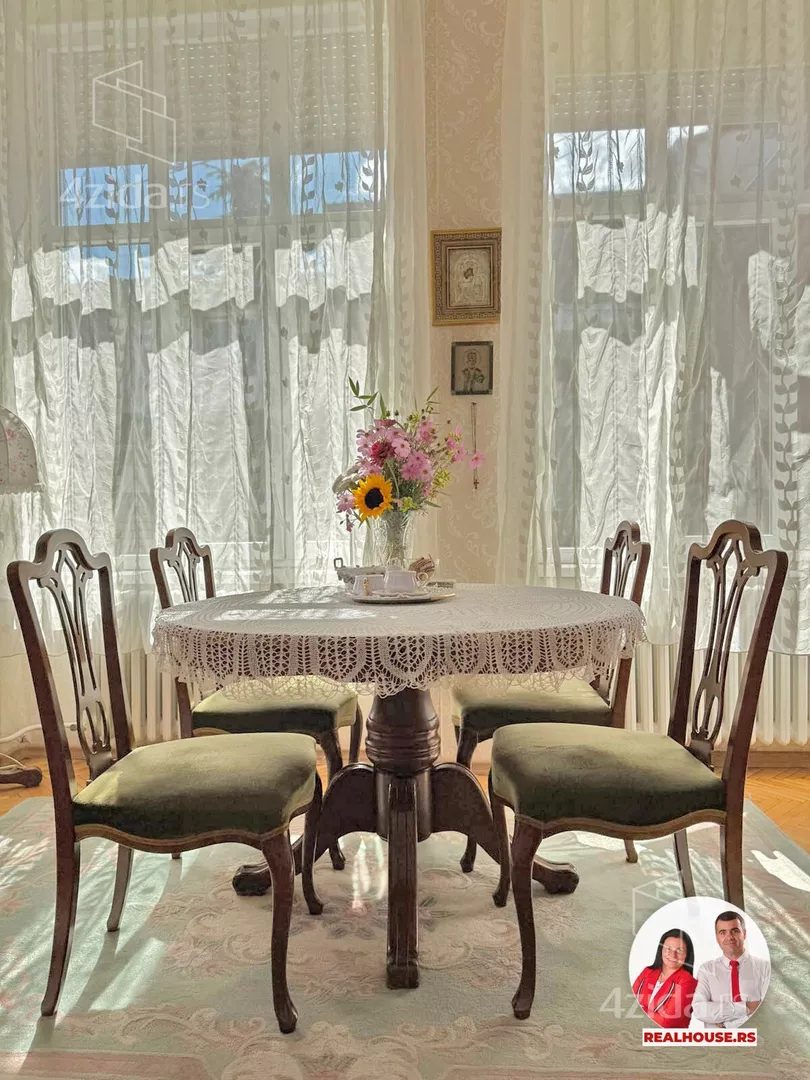 Sa ulične strane nalaze se dve ogromne sobe, onako kako su se nekada pravile-dostojanstvene i prostrane i to sa mogućnošću da u njima stanu i masivni komadi nameštaja a da opet ostane dovoljno prostora za kretanje. Središnji deo čini dnevna soba i salon a sa dvorišne strane nalazi se još jedan i to veliki dnevni boravak sa terpezarijom, kuhinja i kupatilo. Ovaj deo kuće odiše posebnom toplinom – spoj starinskog i funkcionalnog i upravo ovo i jeste kutak koji nosi duh i priču prošlog veka.
