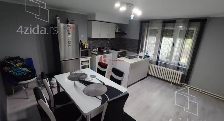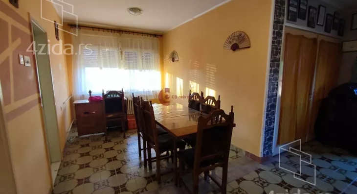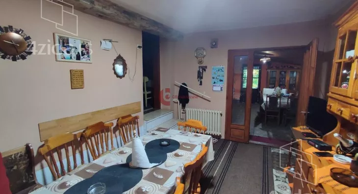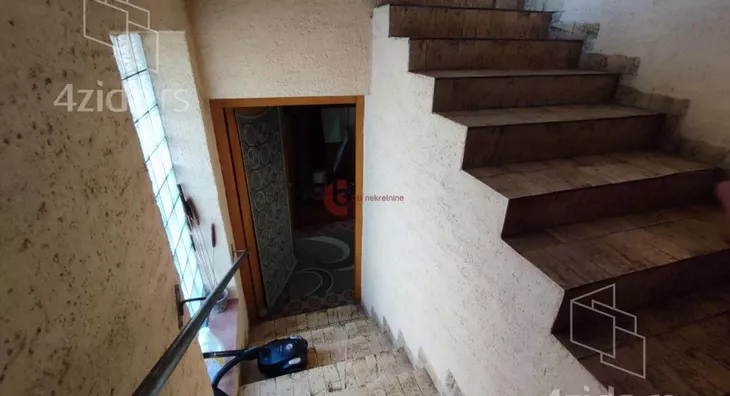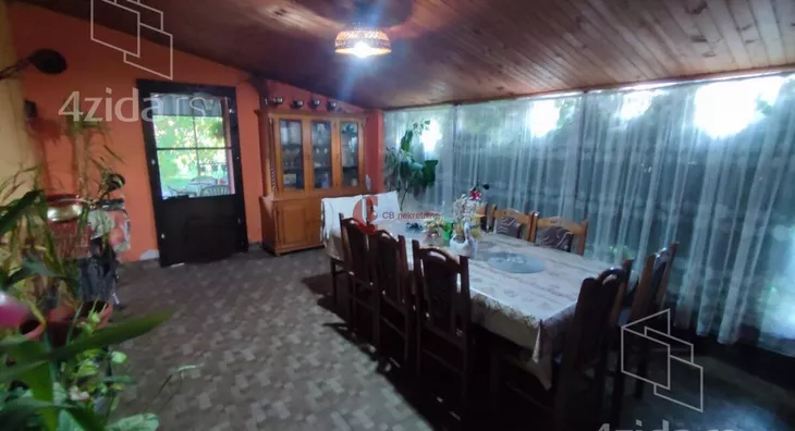 Glavna kuća građena od čvrtog materijala i ima 200 m2, sastoji se na prizemlju od ulaza sa hodnikom i stepeništem za sprat, dnevne sobe, kupatila, kuhinje sa trpezarijom, wc, dve spavaće sobe, jedne trpezarije koji ima direktan izlaz za dvorište. Na spratu je hodnik, kupatilo, kuhinja, terasa i tri soba. Podovi su laminat, parket i keramičke pločice. Iza kuće je podrum,gde je smeštena kotlarnica. Stolarija je klasična drvena. Grejanje je na etažno grejanje na čvrsto gorivo i na gas. Struja je trofazna.