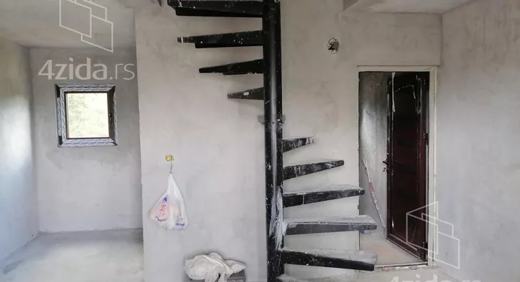 Kuća zidana termo blokovima (temelj u osnovi 9.5x5) po projektu trosobna, tip "planinska kuća", prizemlje i potkrovlje 100m2.