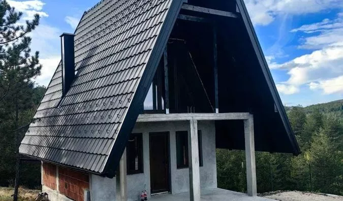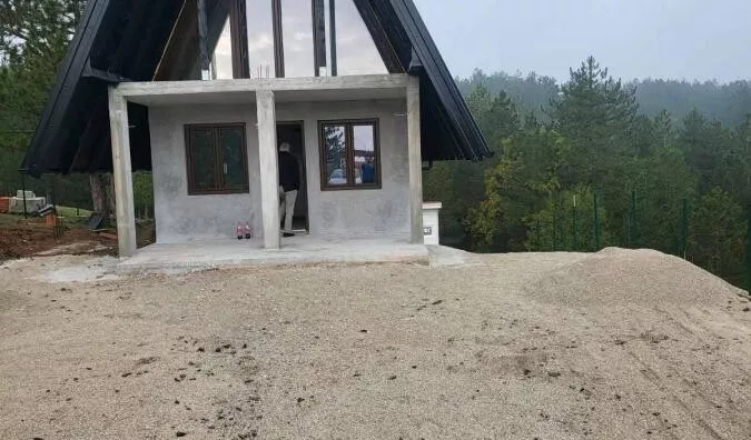 Ukrovljena kuća, postavljena PVC stolarija sa dim staklima sa spoljne strane, izvedno podno grejanje sa košuljicom preko, na placu površine 14.53 ari na obroncima Zlatibora u Šljivovici.