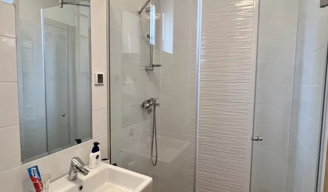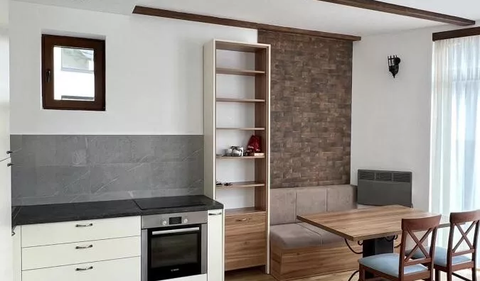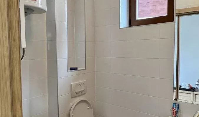 - Opremljenost: Prazno - internet, interfon, TV, klima, veš mašina, sudo mašina, frižider, rerna, ležaj, plakar