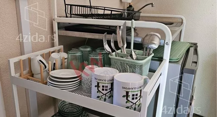 - Nameštaj i oprema: IKEA nameštaj, bela tehnika, flat-screen TV, italijanska keramika, klima uređaji,