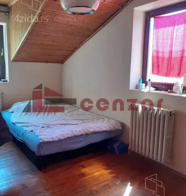 Prodaje se dvojna kuća u naselju Palić .U prizemlju kuće se nalazi dnevni boravak koji je povezan sa kuhinjom i trpezarijom i ima izlaz na terasu,kupatilo sa tuš kabinom i jedna spavaća soba.Na spratu se nalaze 4 sobe i kupatilo.Postoji i tavanski prostor gde bi mogla da se smesti jedna soba.Podovi u kući su parket i brodski pod.Vodovod i kanalizacija su gradski, struja trofazna,stolarija drvena.