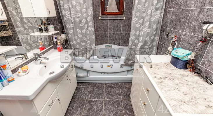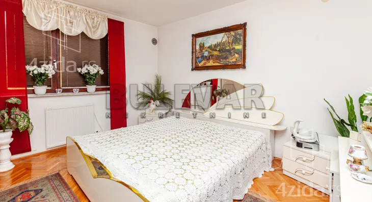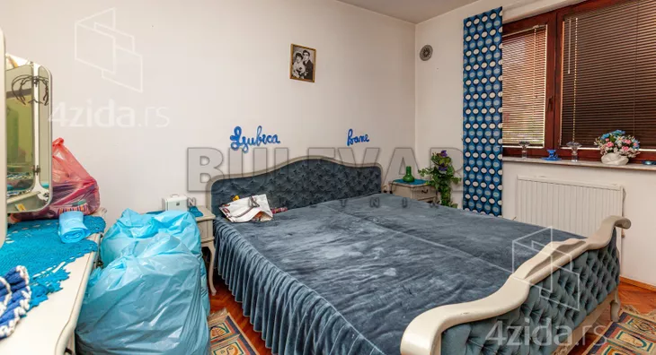 Na prodaju prelepa porodična kuća odlične gradnje u blizini Pantelejske crkve. Nalazi se na lepoj lokaciji za miran porodični život, udaljena od centra na svega 3km. Izgrađena je planski i po evropskim standardima, te pruža mnogo mogućnosti u uređenju enterijera shodno potrebama budućeg vlasnika, od podele na više manjih stambenih jedinica, do spajanja u veće ili pak fizičke podele u dve kuće u nizu, jer se kuća svakako nalazi na dve parcele. Kuća je samostojeća , u osnovi 190m2, ukupne površine 560m2, spratnosti prizemlje i dva sprata. Nalazi se na placu ukupne površine 6.5 ari. Podeljena je u 3 zasebne stambene jedinice, koje su nezavisne i svaka etaža ima svoj ulaz i svoje stepenište u sklopu objekta. U sklopu prizemlja je garaža, 30m2, iz hodnika u nastavku je ulaz za podrumske prostorije. Stan je komforan, po strukturi četvorosoban, površine oko 130m2 sa izuzetno lepim i funkcionalnim rasporedom prostorija. Sastoji se od ulaznog hodnika, velikog dnevnog boravka, trpezarije, izdvojene kuhinje i spavaćeg degažmana. Tu su tri komforne spavaće sobe, dva kupatila, vešeraj ili radna soba i prostorija za odlaganje stvari, američki plakar. Iz boravka je izlaz na veliku verandu, koja ima prilaz sa obe strane dvorišta. Na prvom spratu su dva identična trosobna stana, po 75m2, svaki ima svoje unutrašnje stepenište i svoj ulaz iz prizemlja. Mogu da se spoje u jedan ogroman stan ako to budući vlasnik želi. Oba imaju prelepe terase sa izlazom iz dnevnog boravka. Drugi sprat tj visoko potkrovlje je takođe nezavisan, sastoji se od jedne ogromne prostorije sa svim izvedenim instalacijama u sivoj gradnji. Dvorište je kompletno uređeno, objekat okružuje zelena površina, sa puno cveća i raznog ukrasnog grmlja. Tu su fontana i prelep kutak za uživanje, svaka staza je popločana, a u drugom delu dvorišta je bunar obložen kamenom, koji je u funkciji, ima hidrofor. U zadnjem delu dvorišta nalazi se pomoćni objekat u okviru kojeg su tri zasebne ostave za svaki stan, prostorija za alat, ozidana pečenjara za hleb i meso i ozidani roštilj. Objekat je izuzetno kvalitetne gradnje, sa duplom spoljnom izolacijom, sendvič zid, kvalitetna drvena stolarija sa roletnama, prvoklasni parket je postavljen na svim etažama, kvalitetna keramika je u kuhinji i u kupatilu ali izvorna. Svaki stan ima svoje brojilo. Uknjižena sa građevinskom dozvolom po projektu. Topla preporuka agencije. Ovo je samo deo naše ponude, ovu kao i druge nekretnine sa većim brojem fotografija možete pogledati na našem sajtu.