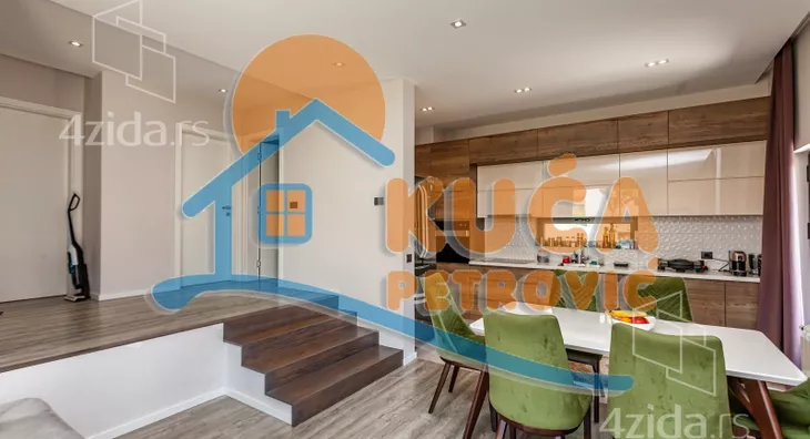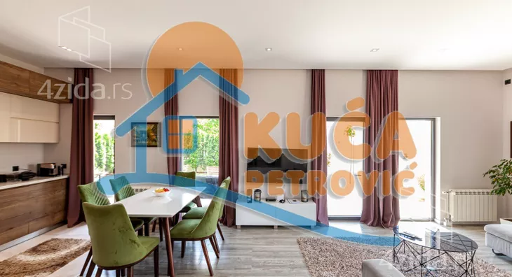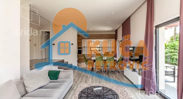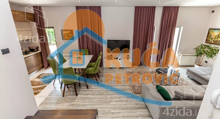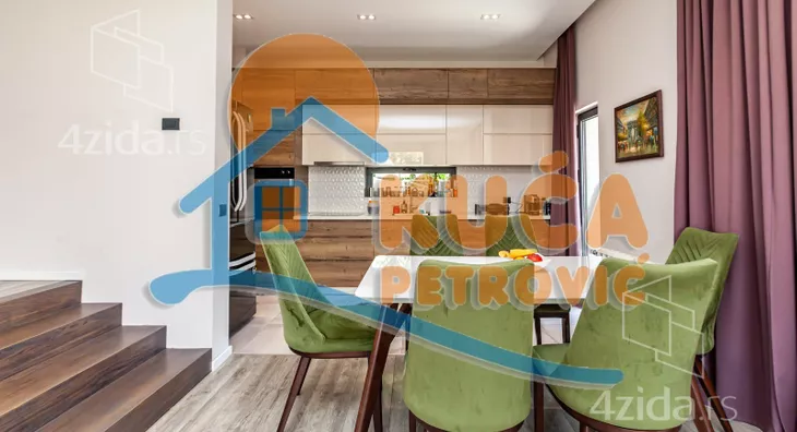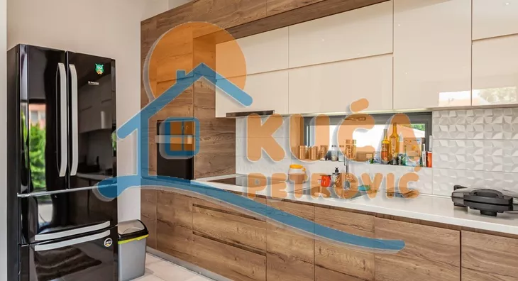 U ponudi je nova luksuzno opremljena i kvalitetno izgrađena kuća, jedna od najlepših u gradu. Nalazi se na Panteleju, u mirnom delu grada i pruža potpuni komfor za moderan i prijatan život višečlane porodice. Sastoji se od prizemlja u dva nivoa, koje čine ulazni funkcionalni hodnik, prostrana dnevna soba sa trpezarijom i modernom, kvalitetnom kuhinjom, gostinjske - spavaće sobe i kupatila. Na spratu, do kojeg se dolazi unutrašnjim stepenicama, su još tri spavaće sobe, kupatilo i velika terasa. Do uređenog i korisnog podrumskog prostora se dolazi iz unutrašnjeg dela ili sa spoljne strane. Tamo je kotao za etažno grejanje (struja, pelet), prostor za odlaganje stvari i ima teretanu. Na podovima je kvalitetan parket i uvozna keramika, spoljašna stolarija je aluminijumska u najluksuznijoj varijanti. U kući je puno pažljivo biranih građevinsko - tehnoloških detalja, poput odlične rasvete i instalacije u celoj kući (Legrand), nadzornih mogućnosti i izvedene pripreme za postavljanje solarnih panela. Unutrašnje suvo malterisanje - knauf. Odlična fasadna i krovna izolacija, a kuća je pokrivena atraktivnim uvoznim crepom. Dvorište oko kuće je ograđeno zidanom ogradom, moderno uređeno zelenilo sa tehničkim pomagalima za održavanje (prskalice za travu, bunarska voda, dva trema ). Uknjižena sa građevinskom dozvolom, u postupku dobijanja upotrebne. Vlasnik radi na dodatnom ulepšavanju i modernizaciji kompletnog objekta. Kupce kojima je ova kuća privukla pažnju, čekamo sa dodatnim informacijama i još puno slika celog objekta, unutrašnjosti i dvorišta. Pozovite i zakažite razgledanje.
