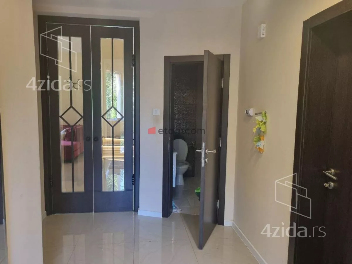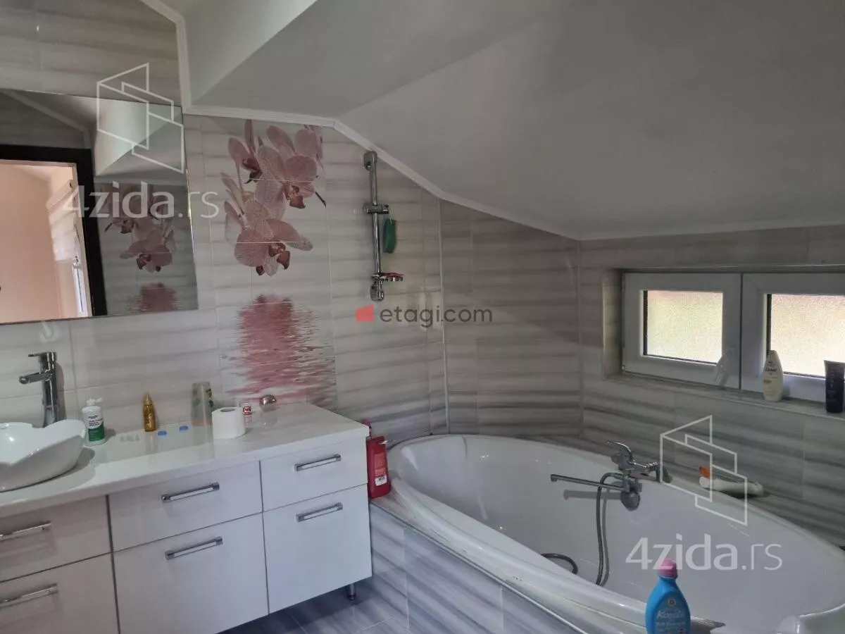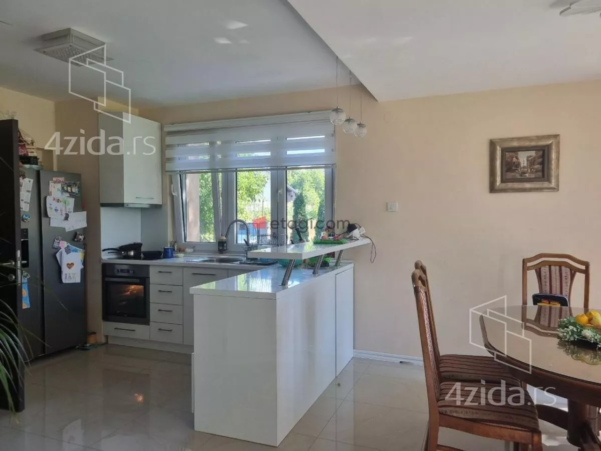 Na prodaju prelepa porodična kuća sa velikim dvorištem i verandom. u mirnom delu grada i pruža potpuni komfor i mir za moderan i prijatan život višečlane porodice. Sastoji se od prizemlja u dva nivoa, koje čine ulazni funkcionalni hodnik, prostrana dnevna soba sa trpezarijom i modernom, kvalitetnom kuhinjom, gostinjske - spavaće sobe i kupatila, ulaz u garazu. Na spratu, do kojeg se dolazi unutrašnjim hrastovim stepenicama sa kovanim gvozdjem , su još tri spavaće sobe, 2 kupatila, 1 master bedrum sa gardaroberom i prostranim kupatilom i velikom terasom. U garazi je kotao za etažno grejanje (struja, pelet), prostor za odlaganje stvari. Na podovima je kvalitetan parket i uvozna keramika, spoljašna pvc stolarija u najluksuznijoj varijanti sa sa troslojnim staklom. U kući je puno pažljivo biranih građevinsko - tehnoloških detalja, poput odlične rasvete i instalacije u celoj kući (Legrand), nadzornih mogućnosti i izvedene pripreme za postavljanje solarnih panela. Unutrašnje suvo malterisanje - knauf.Odlična fasadna (25cm)i krovna izolacija, Dvorište oko kuće je ograđeno zicanom ogradom sa Tujama (zalivanje kap po kap )moderno uređeno zelenilo sa tehničkim pomagalima za održavanje (automatske prskalice za travu, bunarska voda, ). Uknjižena sa građevinskom dozvolom, u postupku dobijanja upotrebne. Kupce kojima je ova kuća privukla pažnju, čekamo sa dodatnim informacijama i još puno slika celog objekta, unutrašnjosti i dvorišta sa OGROMNIM DRVETOM koje je kao iz bajke pod zastitom drzave i odaje utisak da ste u OAZI MIRA.