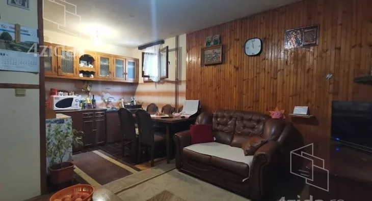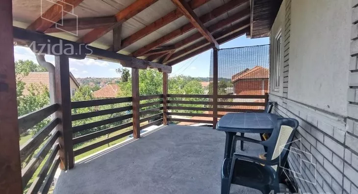 Kuća se nalazi u naselju Petrova, površine 166 kvm, na 6,51 ar placa, sa sopstvenim etažnim grejanjem na čvrsto gorivo. Sastoji se od prizemlja ( hodnik, kupatilo, dnevn soba sa kuhinjom i trpezarijom, dve sobe teraase, kotlarnice i letnje kujne) i sprat ( hodnik, kupatilo, dve sobe, dnevne sobe sa kuhinjom i trpezarijom i terase). Od pomoćnih objekata ima garažu od 22 kvm i trem od 22 kvm. Ograđeno dvorište. Ima gradsku i bunarsku vodu. UKNJIŽENA ( po zakonu o ozakonjenju objekata )