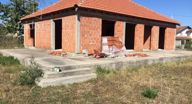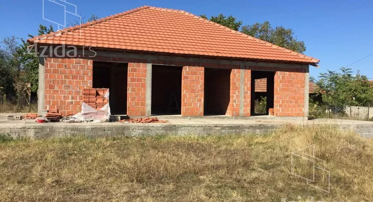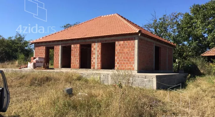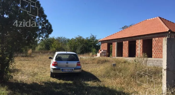 Nezavršena kuća u Petrovcu na odličnom placu kvadratnog oblika od 22ara. Svi priključci na ulici. Po projektu predvidjena kuhinja sa trpezarijom, velika dnevna soba, predsoblje, dve spavaće sobe i kupatilo. Kuća uknjižena.