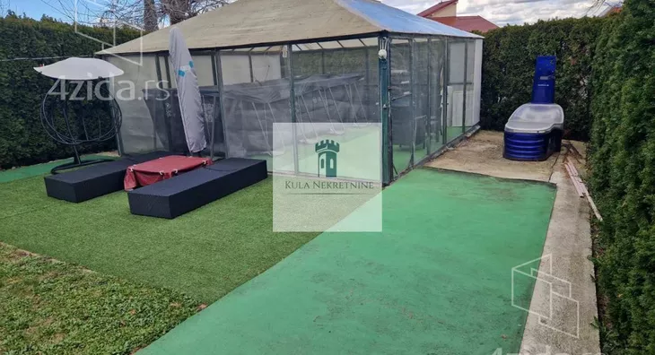 Komforna kuća na mirnoj lokaciji, savršenoj za porodičan život. Sama kuća se sastoji od prizemlja, 2 sprata i tavana u potkrovlju. Prizemlje je preuređeno u salon za lepotu sa solarijumom, stolom za masažu i prelepom saunom za 12 osoba. Na prvom spratu se nalazi dnevni boravak, trpezarija, kuhinja, wc i velika terasa sa izlazom na dvorište. Drugi sprat čine kupatilo, tri spavaće sobe i terase. Kuća se greje na čvrsto gorivo i struju(strujni kotao). Izloacija je takođe na zavidnom nivou, prizemlje - kamen, ostatak kuće - cigla i po + fasada + 5cm stiropor. Cena je za praznu kuću, a postoji mogućnost dogovora oko stvari i tehnike.