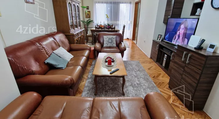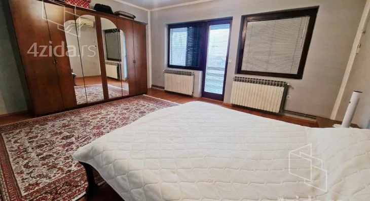 Na prodaju kuća u nizu takozvana vertikala u širem centru u mirnom delu grada.Kuća je izolovana fasadnom ciglom i ima grejanje na gas tako da je je izuzetno topla zimi ,dodatno zato što je u sredini između dve susedne kuće istog tipa.Sastoji se iz tri etaže,prva je suteren gde se nalaze velika garaža,toalet,manji podrum ispod stepeništa i velika prostorija (nekadašnji podrum)od oko 25m2 pretvorena u garsonjeru ili može da služi kao letnja kuhinja iz koje se izlazi i na terasu i u dvorište iza kuće.Druga etaža je prizemlje kuće koje ima hodnik,kupatilo,veliku dnevnu sobu sa izlazom na terasu i u dvorište,spavaću sobu i fizički odvojenu kuhinju i ostavu.Unutrašnjim stepenicama se penje na treću etažu koja je sprat kuće gde se nalazi takođe manji hodnik,kupatilo,predsoblje iz kog se ulazi u dve spavaće sobe,jednu manju i jednu izuzetno veliku, obe sa terasama.Moguća je kupovina putem stambenog kredita i po dogovoru i sa svim stvarima.Kuća je u odličnom stanju.
