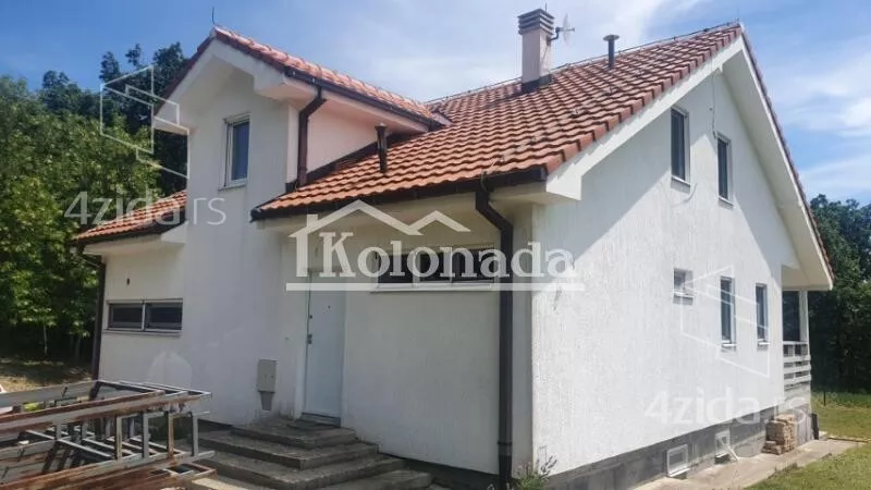 Kuća se nalazi na prostranom, ravnom, osunčanom i ograđenom placu od 44 ara, u mirnom i tihom ambijentu okružen šumom. Kuća se sastoji od suterena, prizemlja i potkrovlja. Suteren se sastoji od dve prostorije i garaže za dva automobila. Prizemlje se sastoji od hodnika, kupatila, ostave, kuhinje sa trpezarijom i prostranog dnevnog boravka sa velikom terasom sa pogledom na Kosmaj. Potkrovlje ima 3 spavaće sobe od toga je jedna sa kupatilom. Ima šestokomornu PVC stolariju sa roletnama i komarnicima, dve inverter klime, podno grejanje, izolaciju, fasadu, trofaznu struju, gradsku vodu i nternet. Licenca 469. Agencijska provizija je 2%. ,