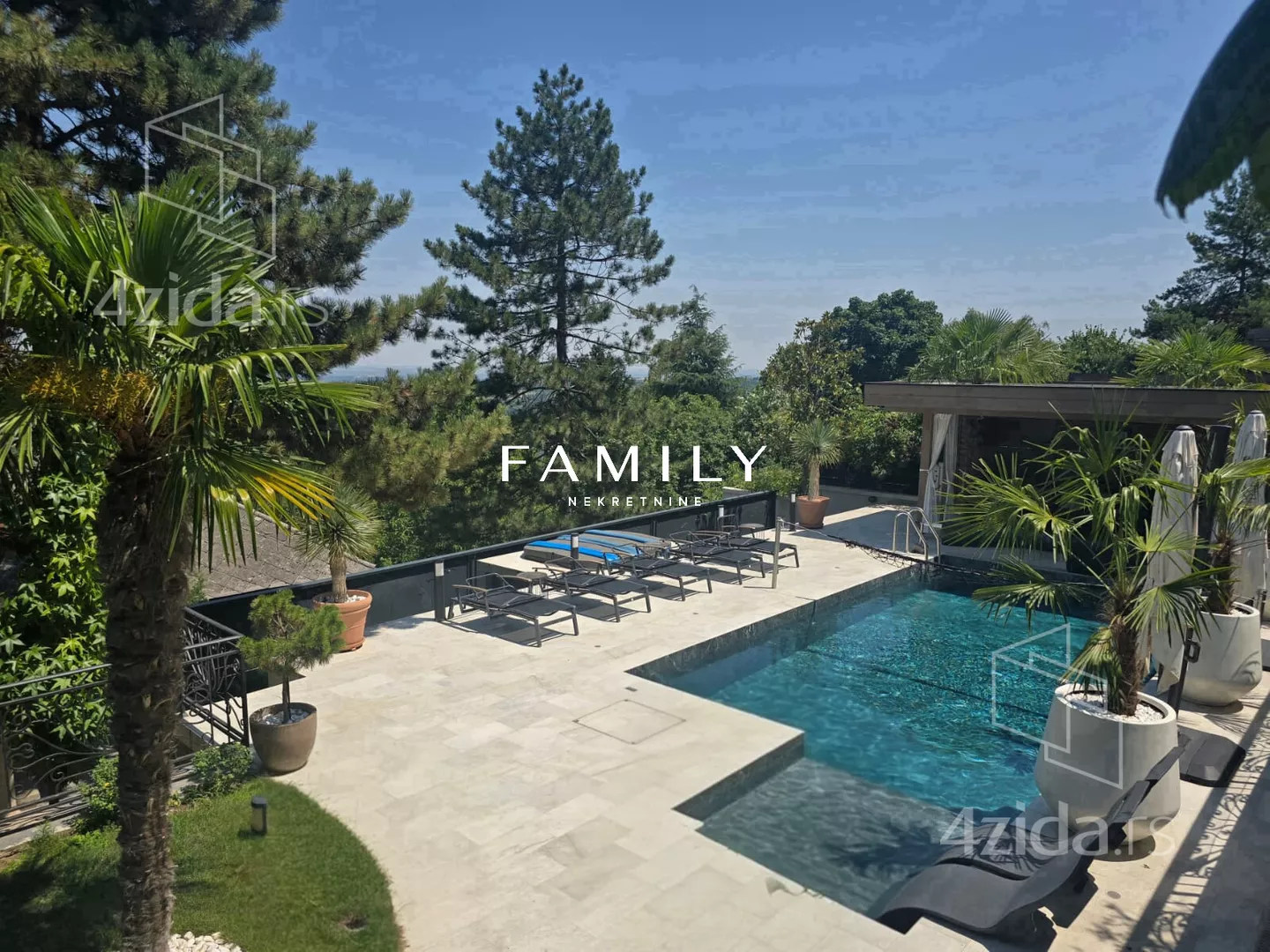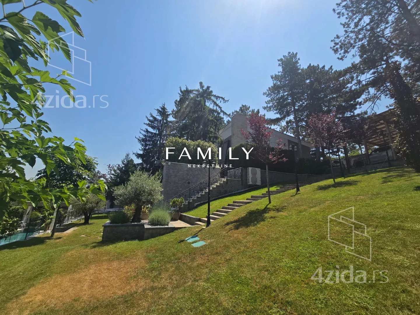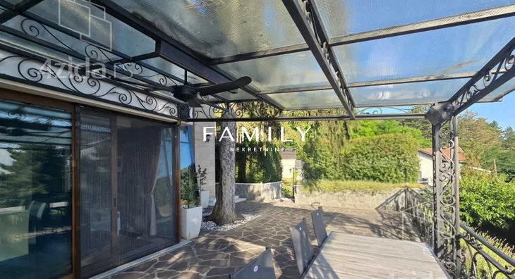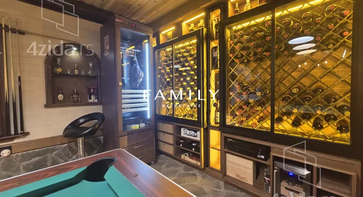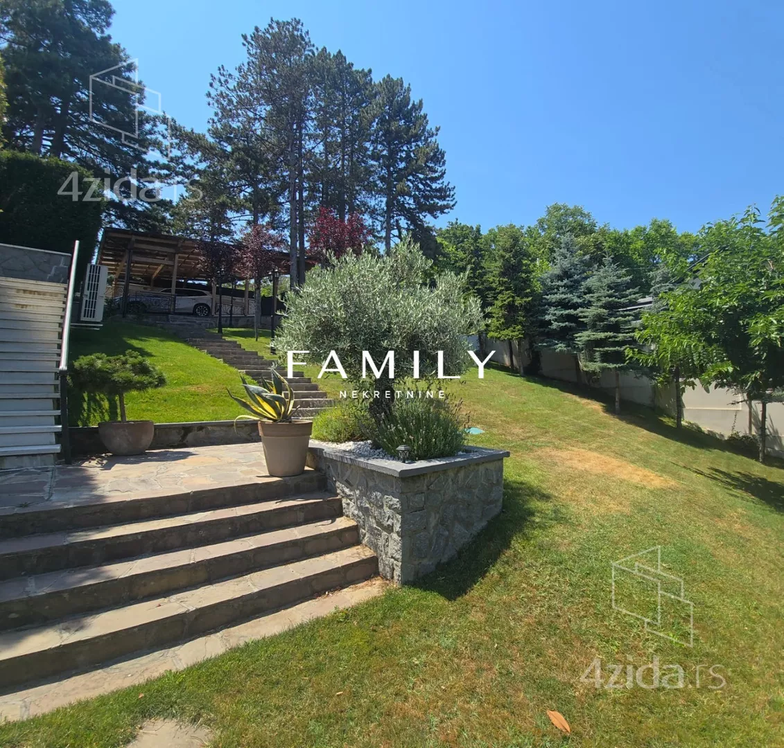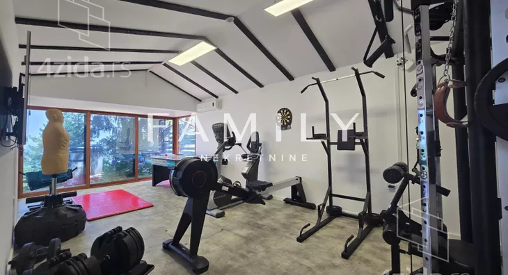 Ukupna površina objekta je blizu 400 m², sa dodatnim sadržajima: teretana, bazen, sauna. Zbog visoke ograde i bogatog zelenila, kuća je u potpunosti zaklonjena od pogleda.