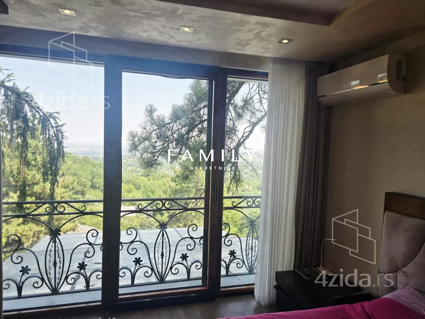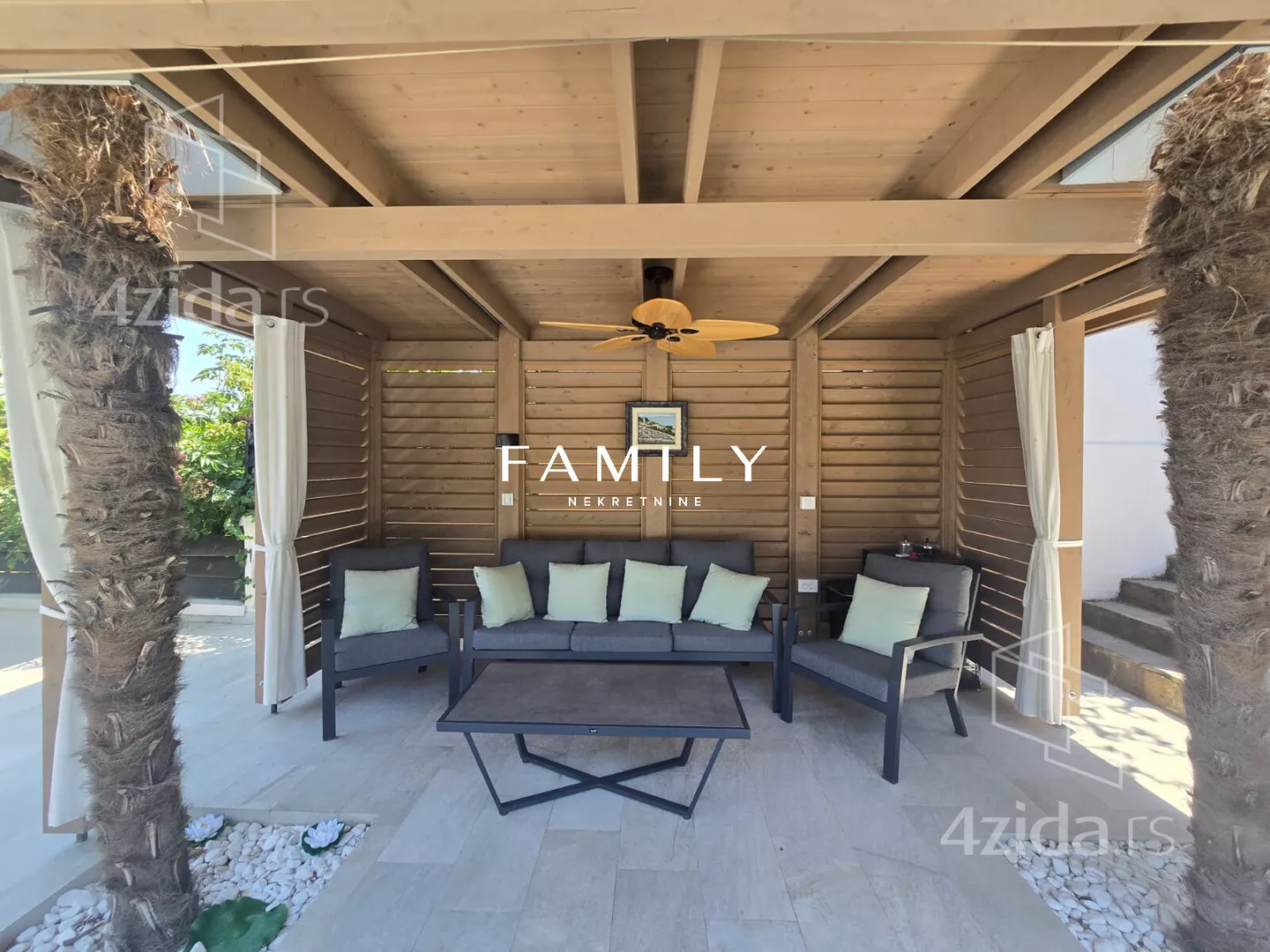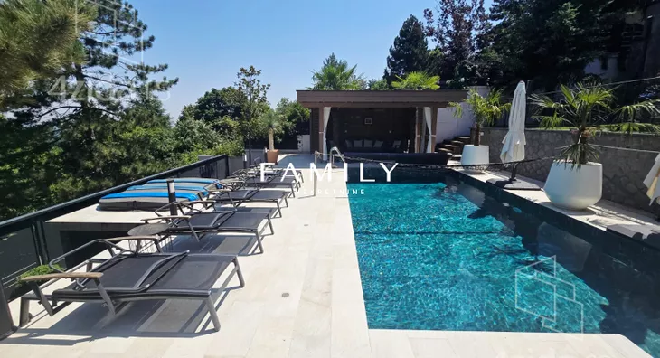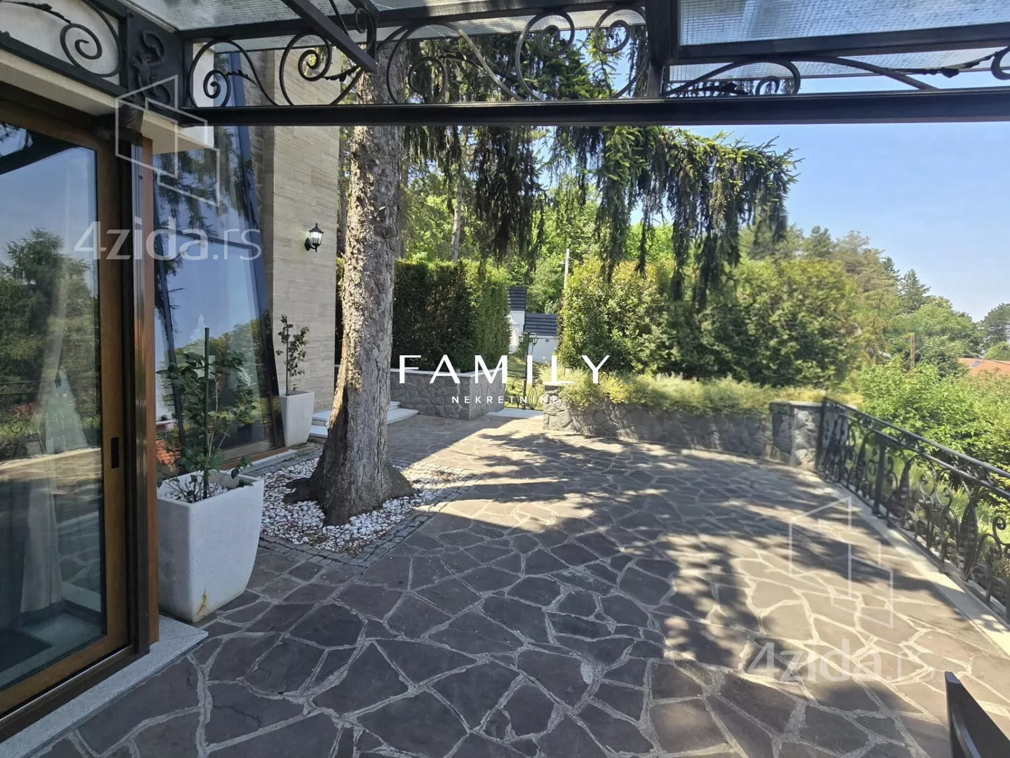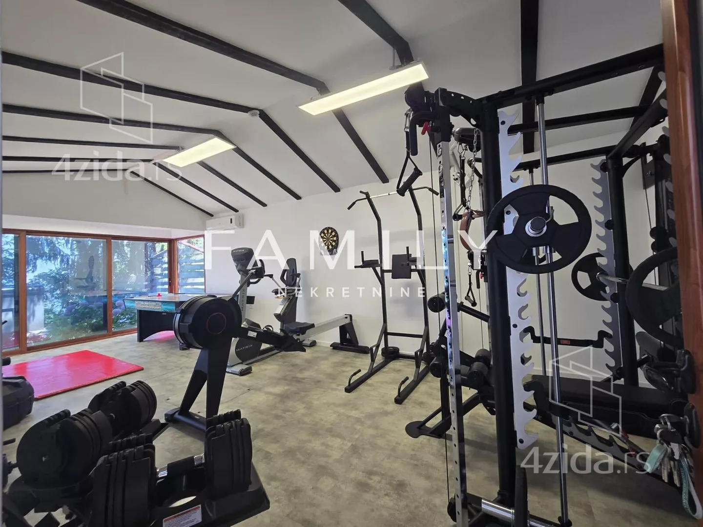 Ukupna površina objekta je blizu 400 m², sa dodatnim sadržajima: teretana, bazen, sauna. Zbog visoke ograde i bogatog zelenila, kuća je u potpunosti zaklonjena od pogleda.