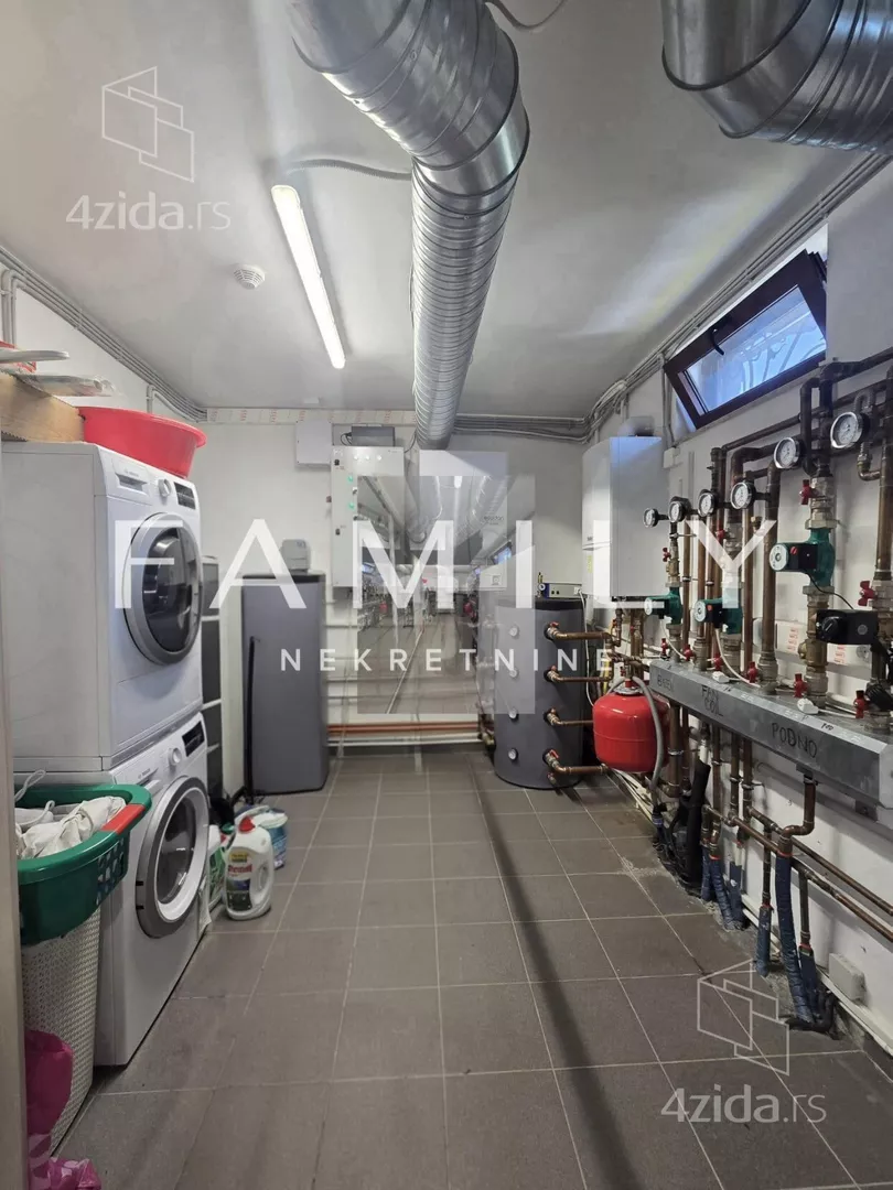 - Opremljenost: Namešteno - internet, TV, klima, veš mašina, kuhinjski elementi, sudo mašina, frižider, zamrzivač, mikrotalasna rerna, šporet, rerna, ležaj, plakar, ugradni plakar, kancelarijski nameštaj