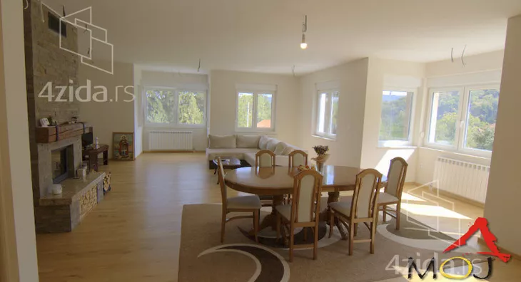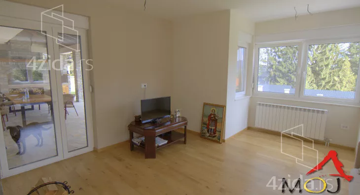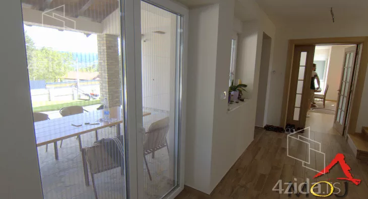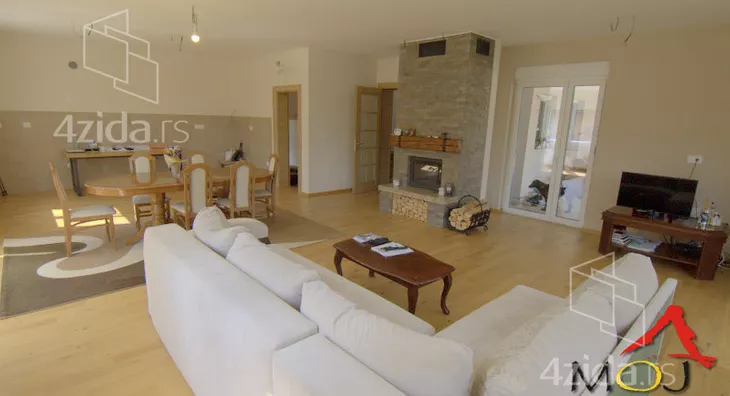 EN: Exclusive house on the slopes of Fruška Gora with a unique view of beautiful nature. The house is ideally positioned and oriented so that the terrace and yard face the tower and untouched treetops, your own paradise in nature. The house features a modern concept of family construction with a large living room with portal windows and plenty of light, perfectly fitting into a familiar way of life with separate rooms on the upper floor with their own bathrooms. The building can be heated by gas and solid fuels with almost new boilers. This is a property that captivates with its view and should be experienced and felt, something that is not easily found in these areas.