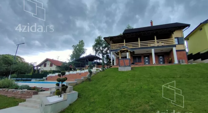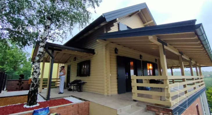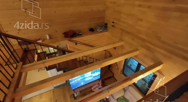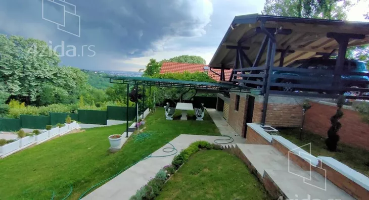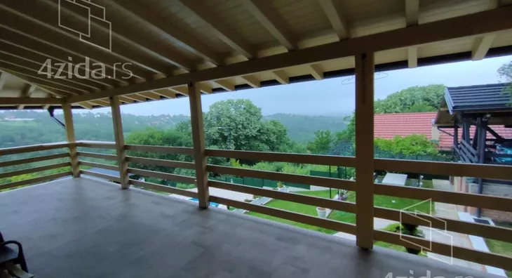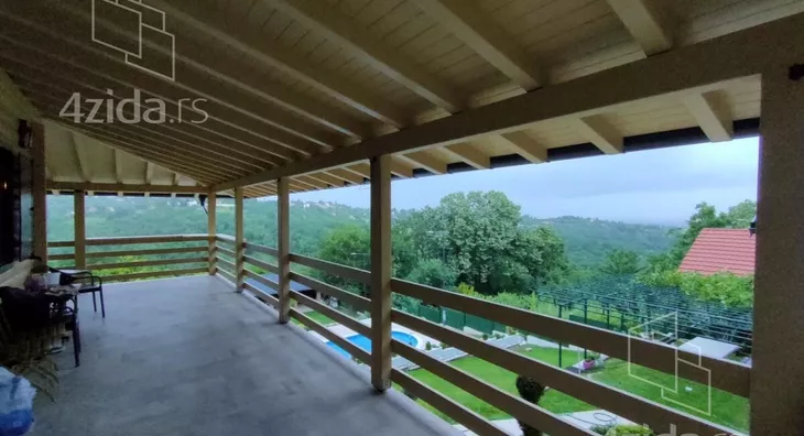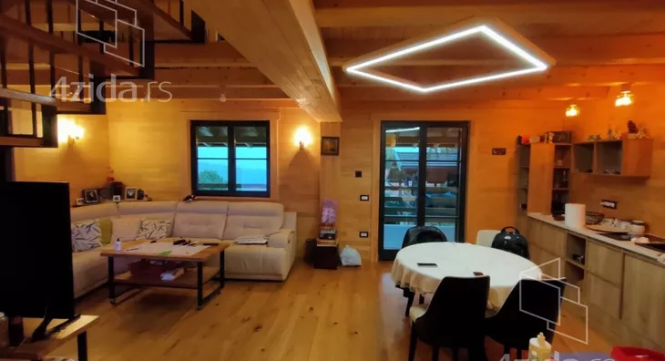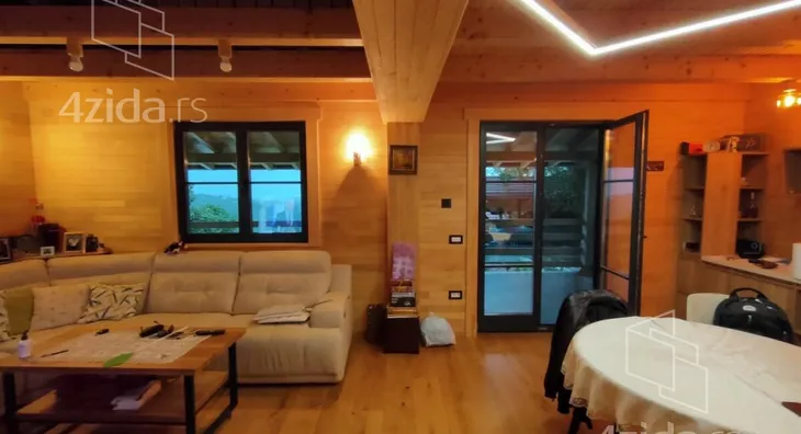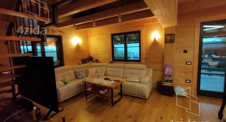 Oglasavomo prodaju nove, moderne Brvnare Su+P stambene površine 151m na Fruškoj gori na Popovici, plac 1800m sa fenomenalnim pogledom na Novi Sad i planinu. Kuća je nova, građena savremenim materjalima iz uvoza od belog bora i ariša, sa odličnom izolacijom, centralna klimatizacija. Veliki dnevni boravak sa kuhinjim i tri spavace sobe u jednoj etazi velike terase, u suterenu magacini, hladna komora za meso, vino, kotlarnica, nusprostorije, na sredini placa je bazen, dosta trave po dvorištu, veliki letnjikovac sa sankom za piće i druzenje, garaza za dva auta, dosta ostava, magacina i sl. Kuća je uknjizena u katastar.