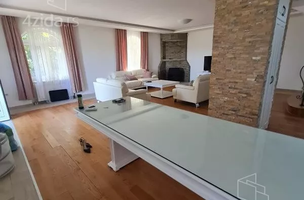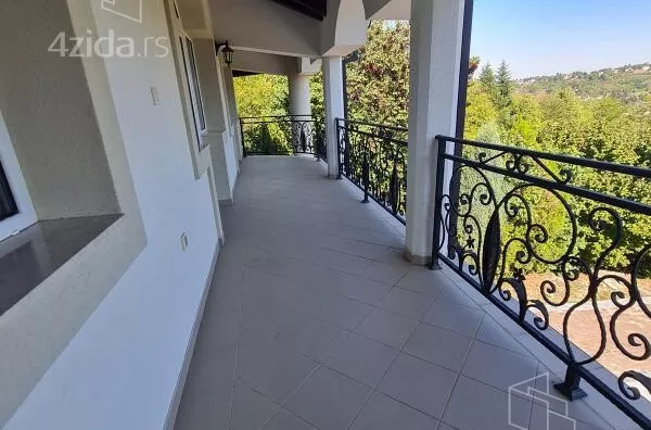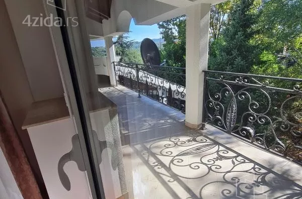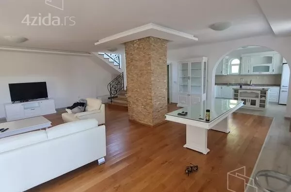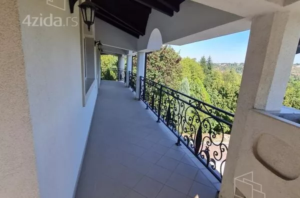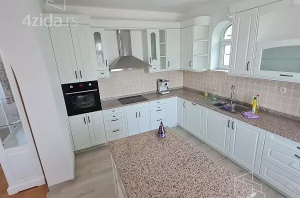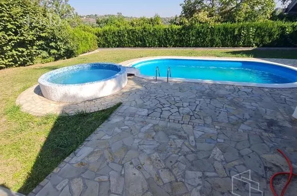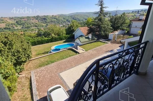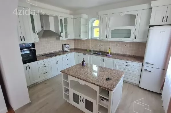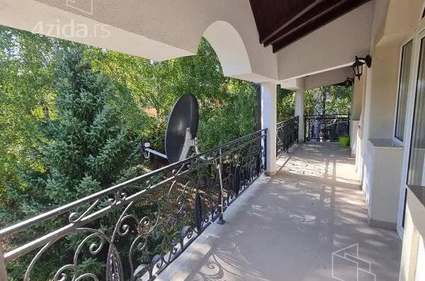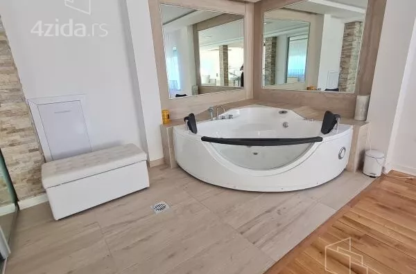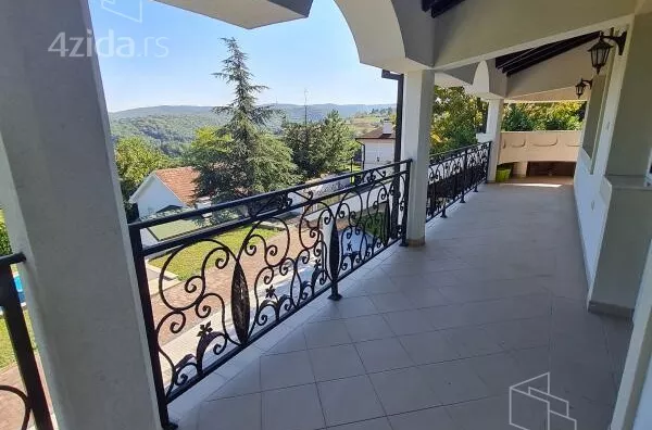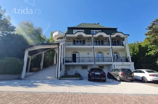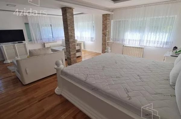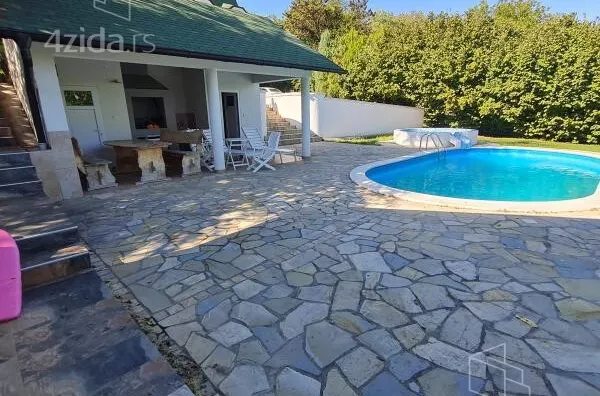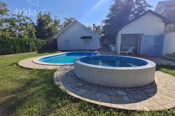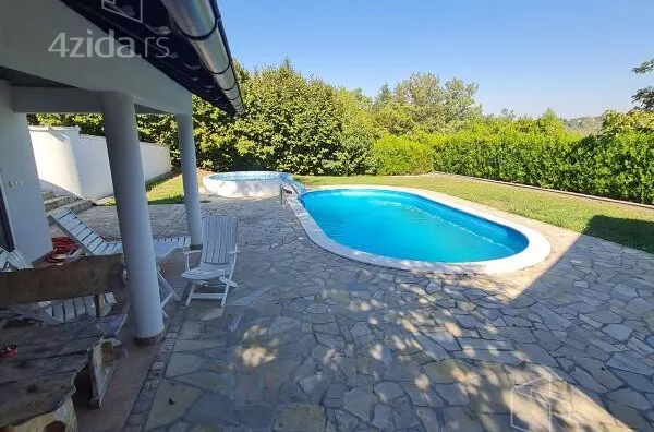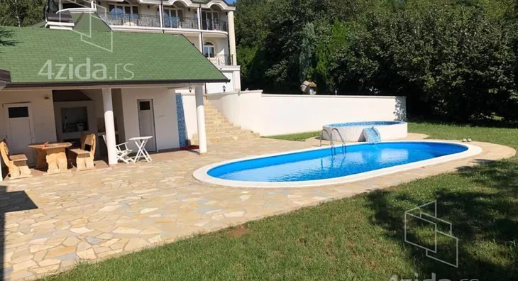 EKSKLUZIVNO PRAVO PRODAJE! U središnom delu Popovice, maloj mirnoj, slepoj ulici, na parceli sa potpunom privatnošću, luksuzna kuća sa bazenom, ekskluzivna lokacija, Popovica (F.Gora-cca 12km od centra N.Sada), stambene površine 660m2 (glavna kuća)+cca 90m2 pomoćni objekat (posebna kuća za goste ili pomoćno osoblje, ostave) na parceli površine 3500m2 sa prelepim pogledom na obronke Fruške Gore. Ograđena parcela sa kapijom od kovanog gvožđa (daljinsko upravljanje). Deo parcele je oplemenjen četinarima, deo je pokriven travnatim površinama, dok je na jednom delu vinograd. Glavna zgrada u prizemnom delu ima dve garaže, na visokom prizemlju prostrani dnevni boravak sa kuhinjom i trpezarijskim delom (cca 60m2) oivičen terasom, toalet, kupatilo, garderober. Na spratu su 4 prostrane spavaće sobe sa terasama i kupatilom, dok je u potkrovlju zaseban apartman, sa manjom čajnom kuhinjom, šankom, dnevnim i spavaćim delom sa jakuzzi kadom, te posebnim kupatilom. Gostinska kuća je komforna sa dve spavaće sobe, kupatilom i velikim dnevno-kuhinjsko-trpezarijskim delom. Kraj bazena dimenzija 8x4x1,5m, sa jakuzzi masažerom i pomoćne prostorije sa roštiljem. Kvalitetna gradnja, ugrađena vrhunska oprema. U ceni i nova kuhinja, nameštaj u kući, svi ugradni plakari, sve nekorišćeno. Prilaz imanju obezbeđen sa dve kapije na daljinsko upravljanje (predulaz i ulaz). Br. u Reg.posredn.475.