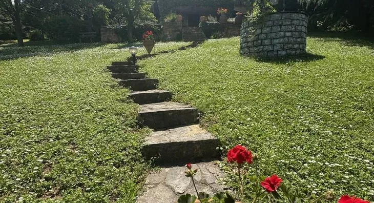 Plac površine 1.526 m² bogato je zasađen raznovrsnim drvećem, cvećem i dekorativnim zelenilom, stvarajući prirodni ambijent savršen za uživanje i odmor. U sklopu dvorišta nalazi se i bazen, savršeno uklopljen u pejzaž.