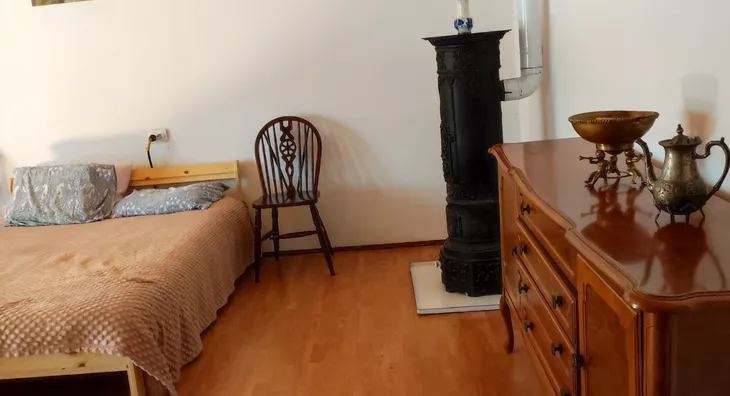 Grejanje: gas (moguće i drva).