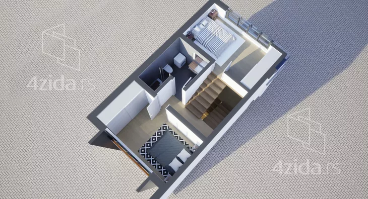 Neto kvadratura po kući iznosi 71 m2. Svaka jedinica poseduje svoje parking mesto kao i ograđeno dvorište.