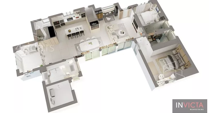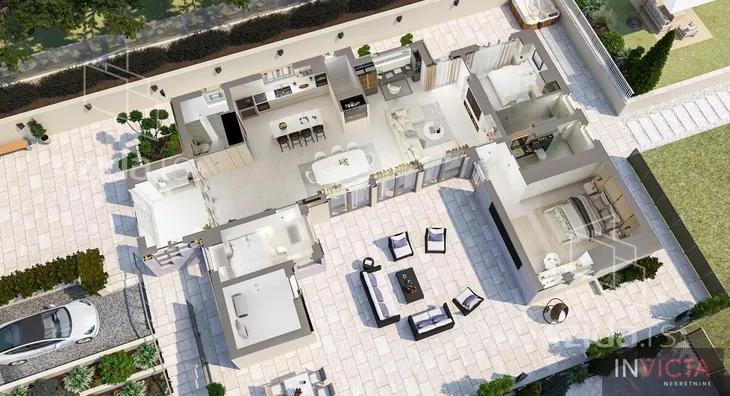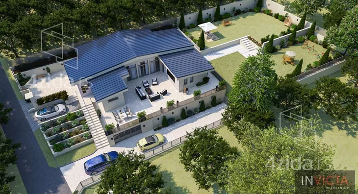 Novoizgrađena kuća na obroncima Fruške gore, nedaleko kako od Novog Sada (10-15 min lagane vožnje, sa novim mostem još brže), tako i od Nacionalnog parka Fruška gora, moderne arhitekture okružena zelenilom. Površina placa je 15a sa orijentacijom ka severoistoku tako da je plac osunčan tokom celog dana. Kuća izgrađena od termobloka, stolarija poslednje generacije profila brenda Alumil. Staklene ograde su od kaljenog i laminiranog stakla, Ograđeno dvorište, do kuće se direktno dolazi novim asfaltiranim putem. Sa prostrane terase ispred kuće je pogled na zelenilo susednog brda i Novi Sad. Lokacija je idealna jer se nalazi u tihom delu naselja gde se nalazi dosta zelenila. U neposrednoj blizini se nalaze osnovna škola ( 14 min udaljena peške), dom zdravlja, marketi, pošta i apoteka.Javni prevoz na 300m od kuće, autobuske linije 77, 78 I 79.Sama parcela se prostire na 1493 m2 i kompletno je uređena i ograđena. U prednjem delu parcele se nalazi kuća od 198 m2 (kuća sa garažom u suterenu), površina prednje terase iznosi još 150m2. Preostali deo parcele poseduje dvorište sa zelenilom kao i koridor ispred kuće sa 5 pozicija za parkiranje automobila. Ispred ulaza se nalazi još jedno parking mesto sa instalacijama za postavljanje punjača za električne automobile. Dvorište sa zelenilom je pokriveno automatizovanim zalivnim sistemom što će omogućiti da rastinje u dvorištu uvek bude zeleno i bujno. Ukoliko budući vlasnik bude želeo da izgradi bazen, za to postoji pozicija i instalacije u dvorištu. Kuća poseduje dnevnu sobu, kuhinju, ostavu, trpezariju, lobi, 3 spavaće sobe, 2 kupatila, 1 toaleti 1 tehničku prostoriju. Oko kuće su prostrane terase, prednji prilaz kući poseduje velike žardinjere sa zelenilom i cvećem sa automatskim sistemom za navodnjavanje i rasvetu. Travnjak oko kuće je uređen tako da se može koristiti atomatska kosilica. U suterenu kuće se nalazi zatvorena garaža za 2 vozila sa automatskim segmentnim vratima. Ispred ulaza se nalazi ijedno parking mesto sa instalacijama za električni punjač za punjenje električnih vozila. U zadnjem delu dvorišta se nalazi pozicija sa instalacijom, strujom, vodom i kanalizacijom za đakuzi kao i tuš. Staklene moderne ograde sa transparentnim staklom su postavljene oko prednje terase. Poravnato dvorište sa zelenilom se prostire na cca 650 m2 u dve zone. Jedna je viša, koja ima mogućnost za gradnju bazena i dodatnog pomoćnog objekta. Dok je donji deo dvorišta idealan za postavku dečijeg igrališta.