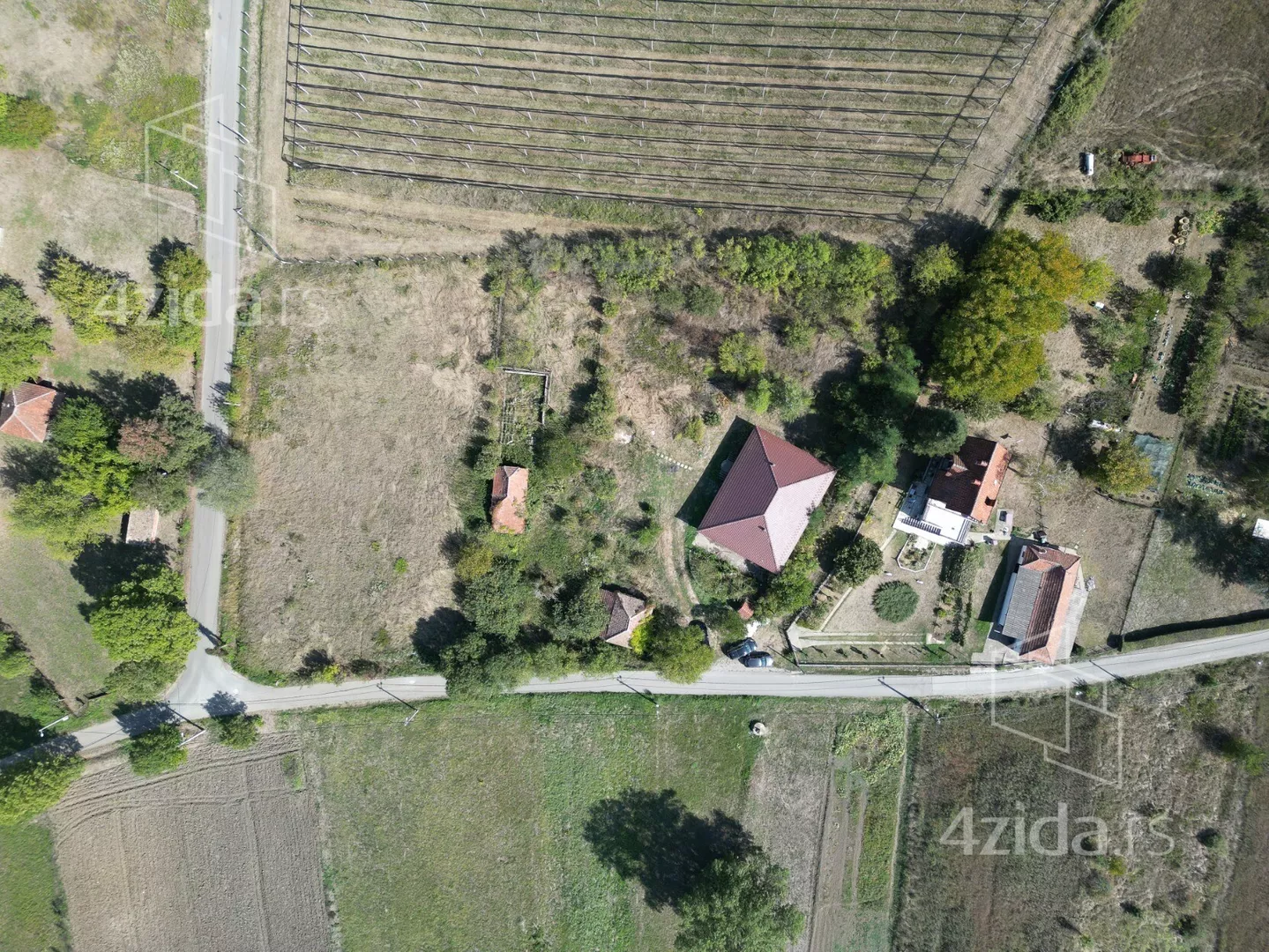 Plac povrsine 52 ara oko kuce, odlicno orjentisan na cosu dve saobracajnice i nema objekata ispred njega tako da je pogleda fantastican + 220 ari preko puta ulice.